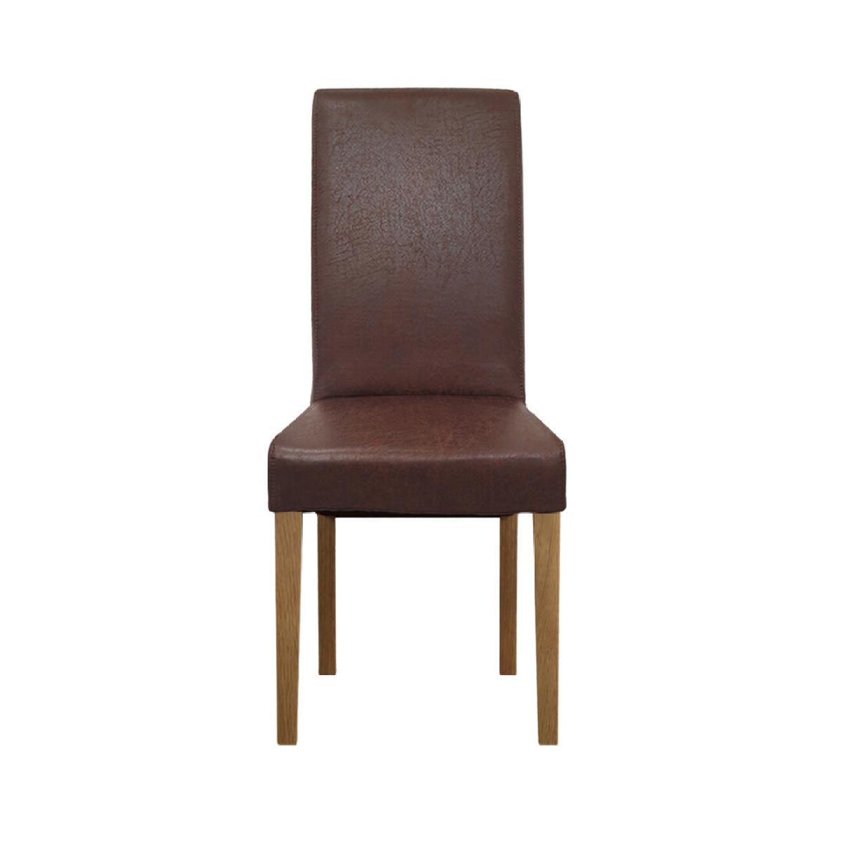 Scroll Back Antiqued Brown Suede Fabric Dining Chairs