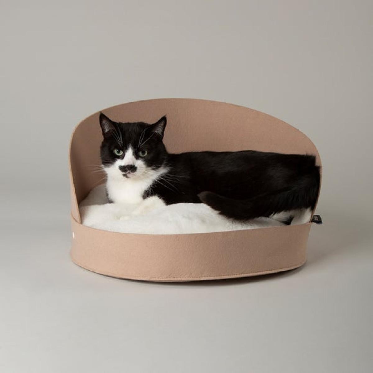 I really like this round cat bed because of its sleek, minimalist design that can blend seamlessly into various interiors. It works particularly well in modern or Scandinavian-style spaces, adding a cosy touch without disrupting the aesthetic. The felt material gives it a soft, natural look, making it feel more like a piece of decor rather than just pet furniture. For styling, consider placing it on a low shelf, beside a reading nook, or even on a stylish rug to make it feel more integrated into your home. Pair it with neutral tones or subtle textures to keep the look cohesive and ensure your feline friend has a comfy, designated spot that looks great too.