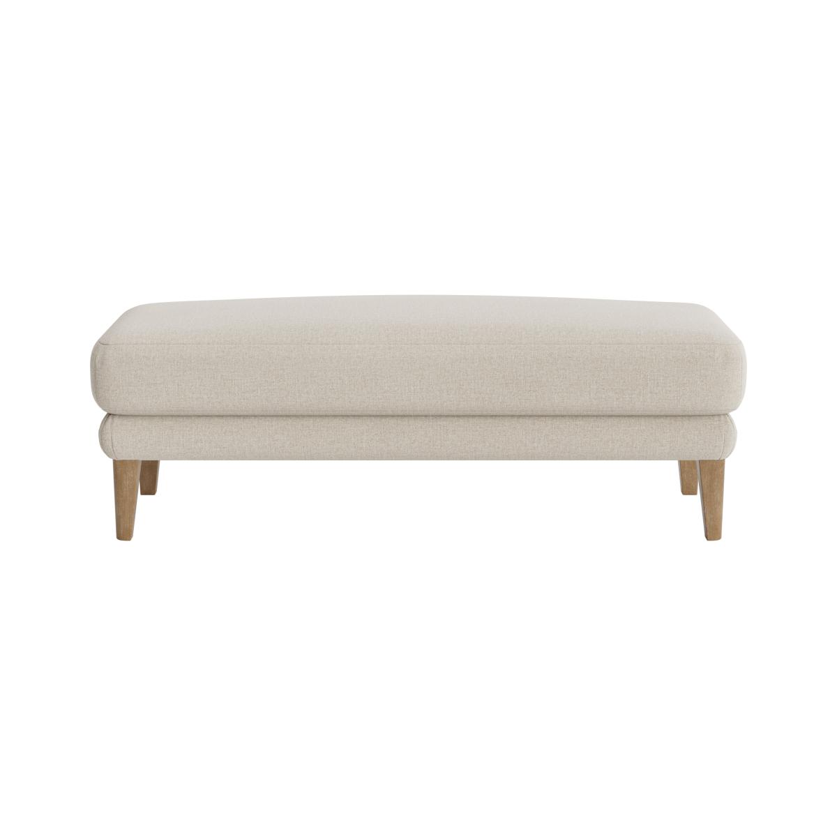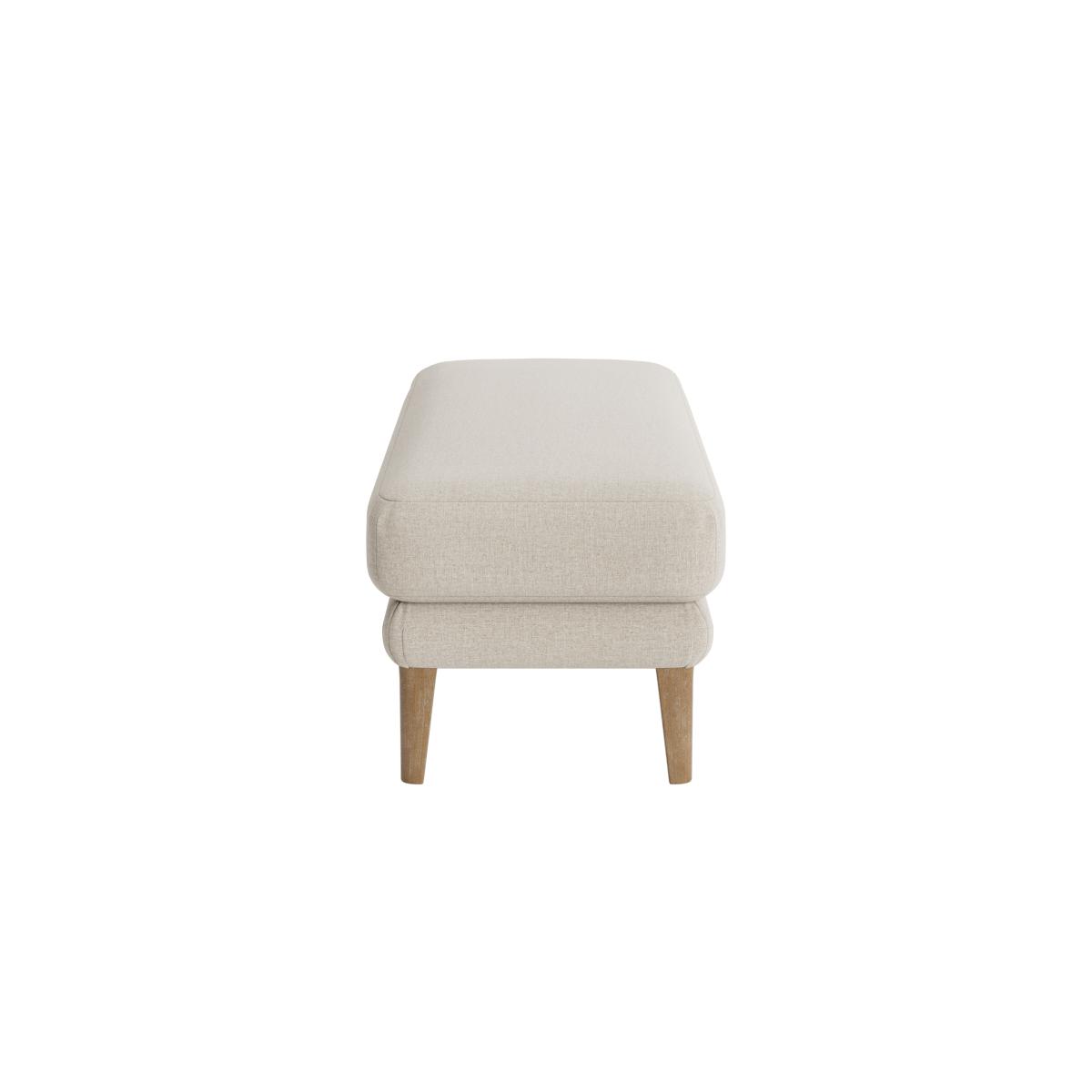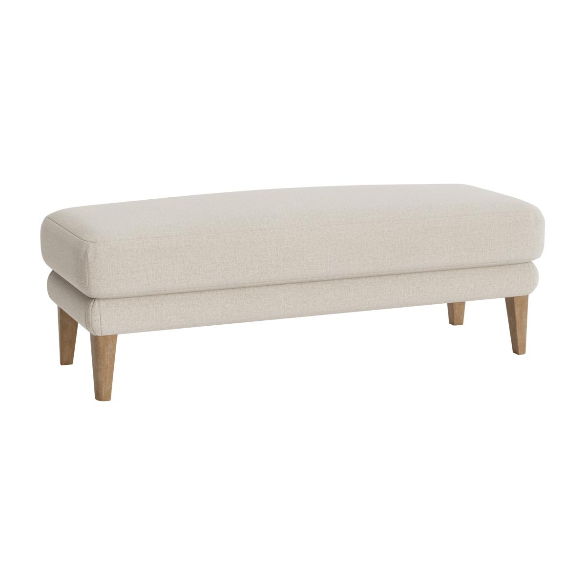 I love this ottoman bench for its versatile simplicity and understated elegance. It’s perfect in a neutral living space, working equally well as a footrest, extra seating, or even a statement piece in an entryway. Its clean lines and natural wood legs give it a timeless appeal, making it suitable for both contemporary and Scandi-inspired interiors. Practical styling tips include pairing it with textured cushions or throws for added comfort, or using it alongside a sofa or armchair to encourage a relaxed, communal feel. It’s also great for layering within a mix of bright and muted colours, helping to ground the overall look while offering functional versatility.