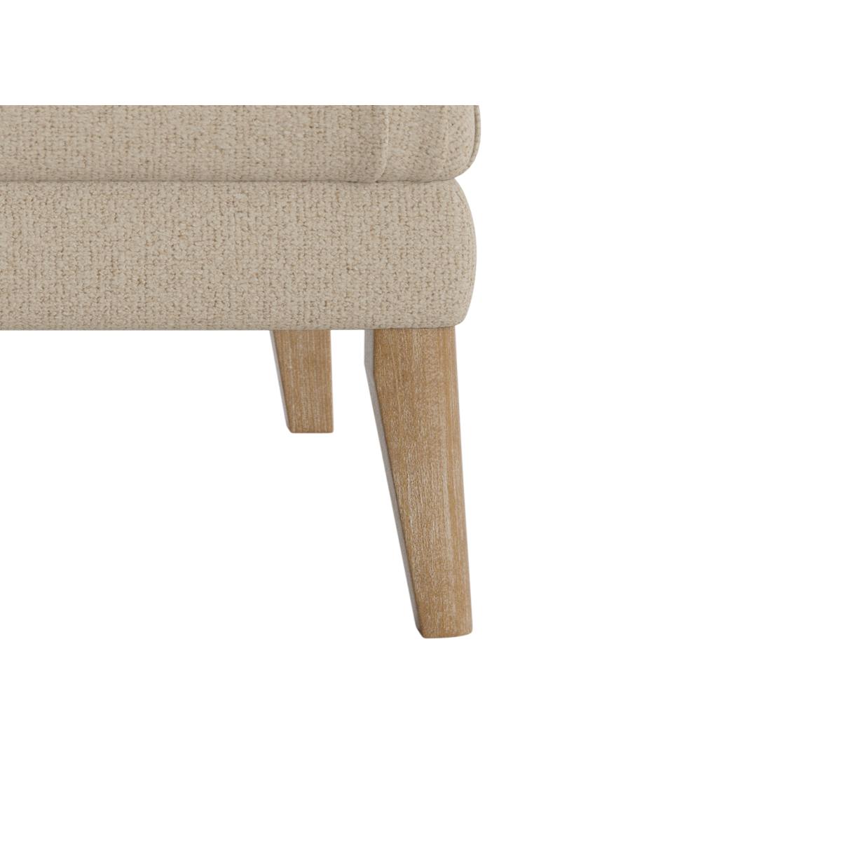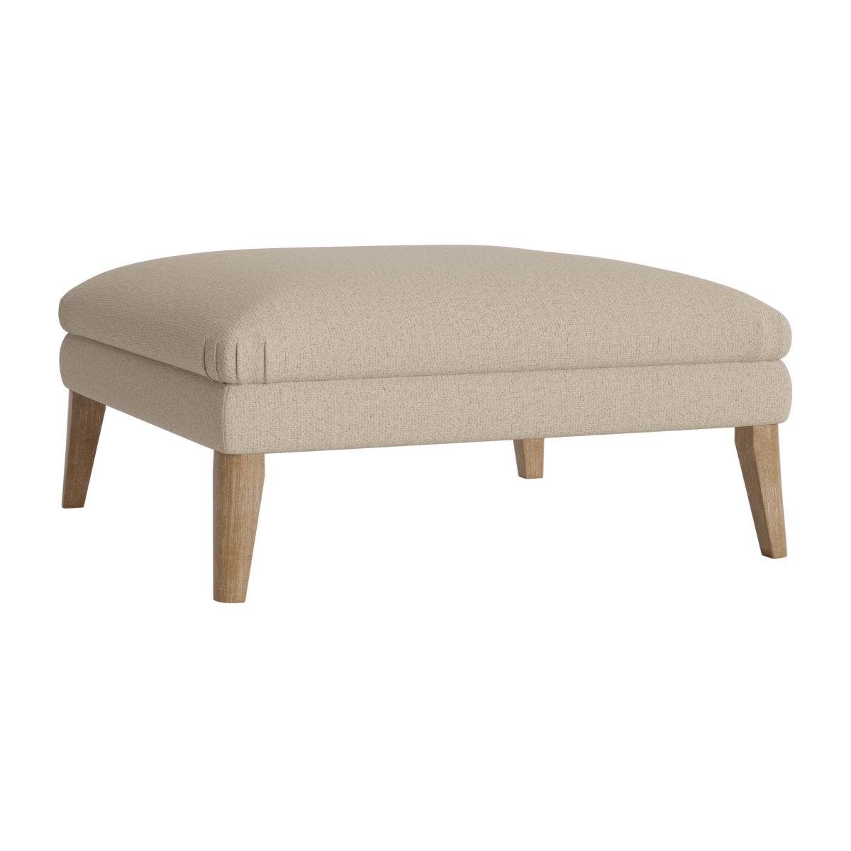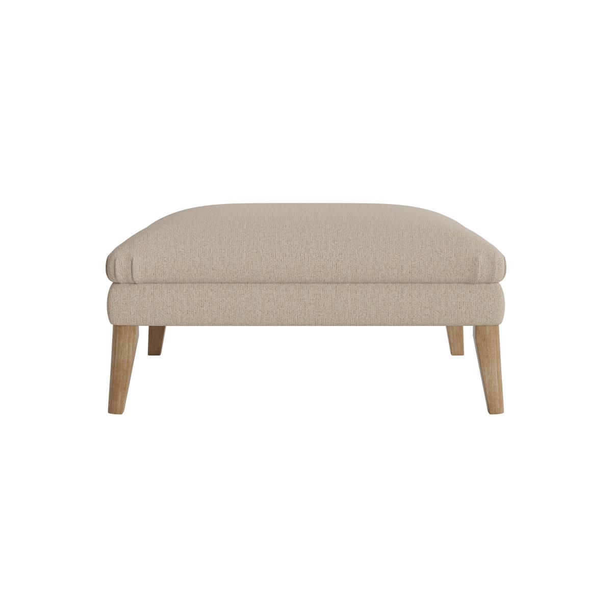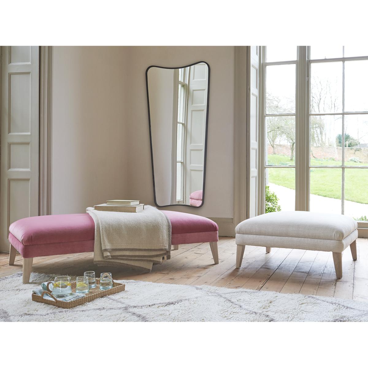 I love this footstool for its versatility and understated style. It works particularly well in cosy living rooms and contemporary spaces, adding a layer of comfort without overpowering the overall aesthetic. Its neutral tone makes it a flexible piece that can complement a variety of colour palettes, and the wooden legs introduce a subtle touch of warmth. Practical styling tips include pairing it with a larger sofa or armchair to create a relaxed, lived-in feel, and top it with a tray or decorative objects for a layered look. This piece also makes a great extra seat or a footrest in a nursery or bedroom, making it as functional as it is stylish.