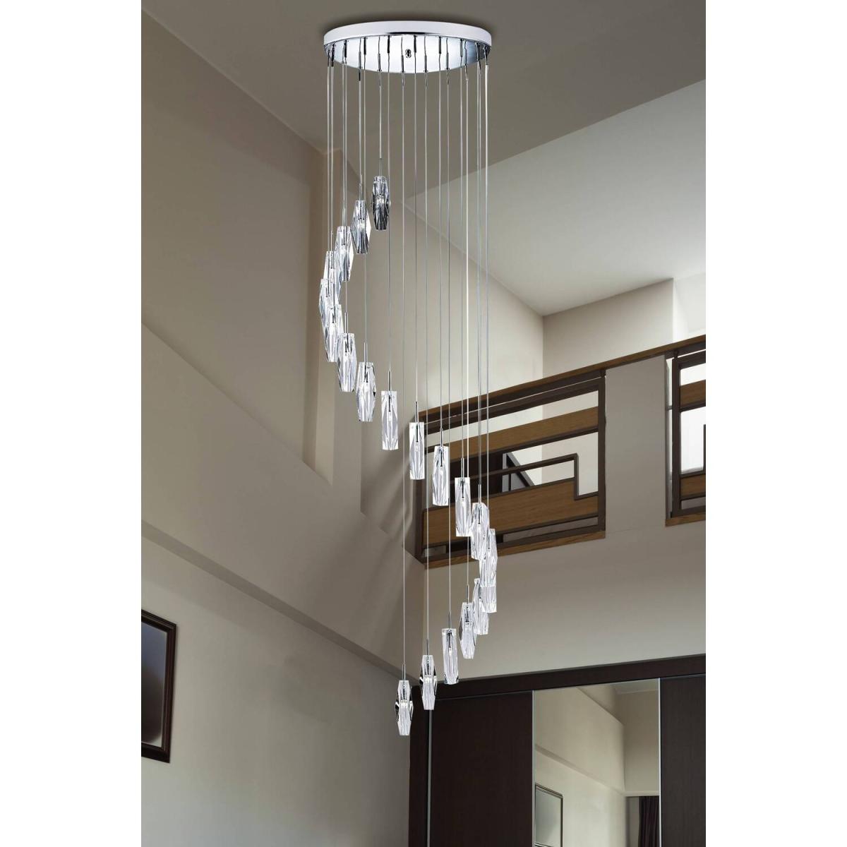 Sculptured Ice 20 Light Spiral Cluster Pendant Chrome, K9 Glass, G4 Bulb - Chrome