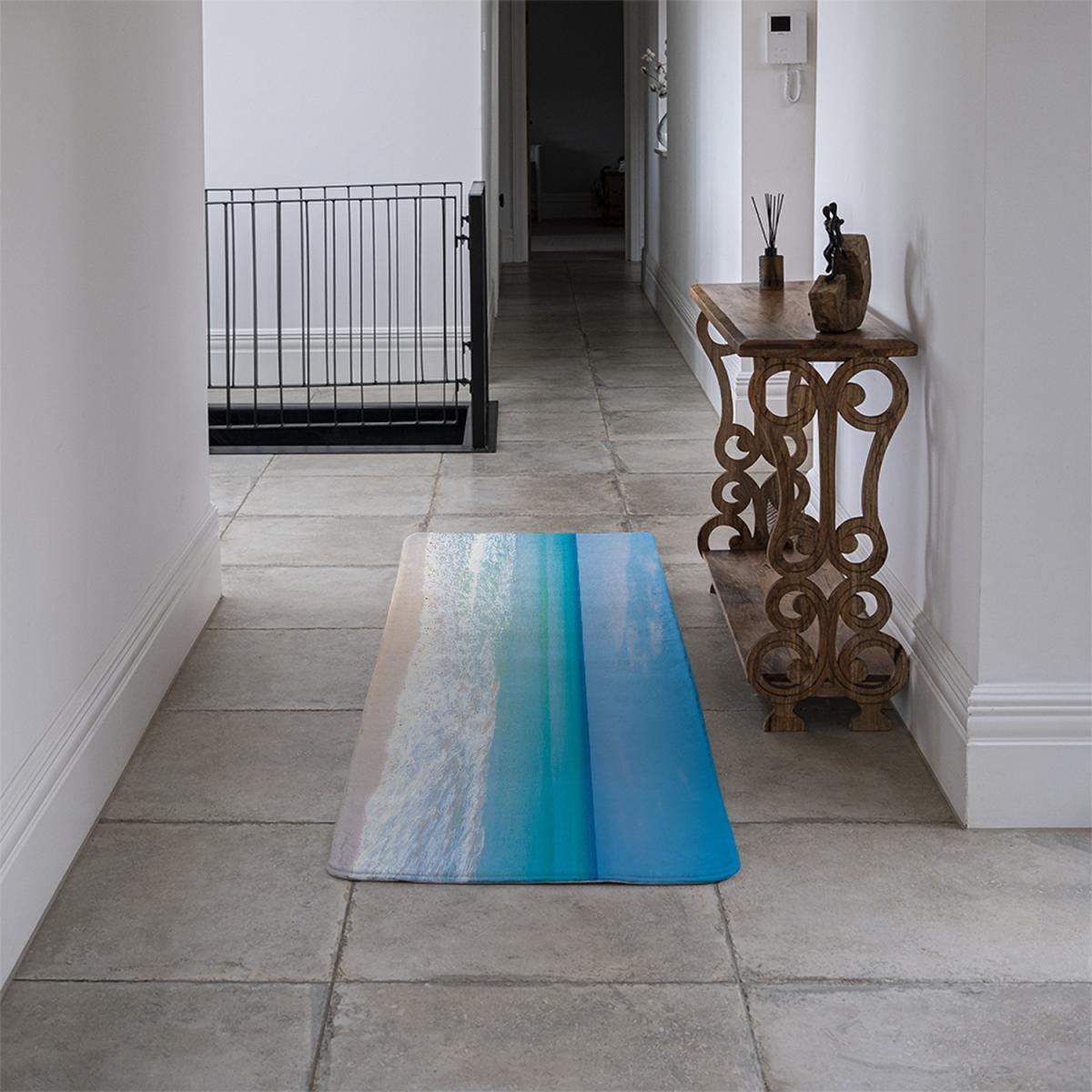 I love this runner because of its fresh, coastal-inspired design, which adds a calming vibe to any hallway or transitional space. The blue shades mimic the sea and sky, making it particularly suited to modern or seaside-inspired interiors. It works well in a variety of settings, from Minimalist to coastal schemes, adding colour without overwhelming the space. Practical styling tips include layering it over neutral tiles or wooden floors for contrast, or pairing it with simple furniture to let the rug be the focal point. Its narrow shape makes it versatile for hallways, entryways, or even a pathway between rooms, providing visual interest and a sense of direction.