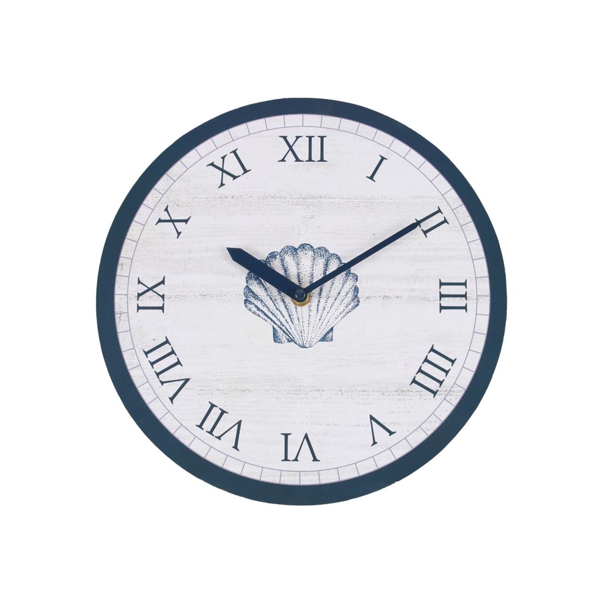 Bring the feeling of the crisp seaside indoors with this shell wall clock. An elegant clam shell illustration and Roman numerals sit on a whitewash-effect background. Requires 1 AA battery (not included). Diameter is 28.7 cm