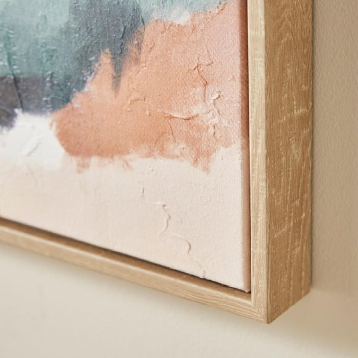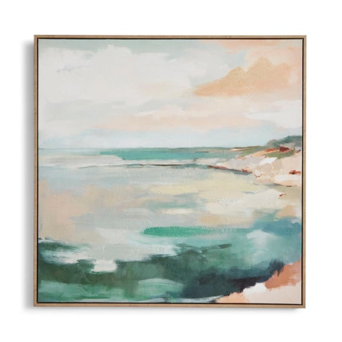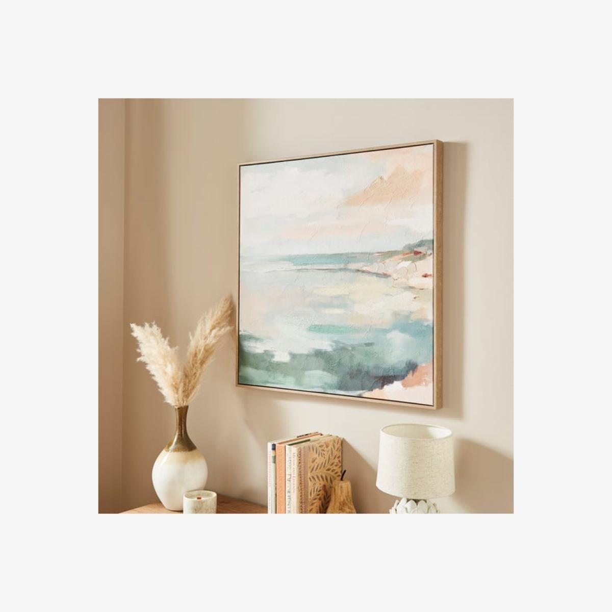 * Soft colours * Abstract seascape * Framed canvas * Ready to hang Bring a sense of calm to your space with this abstract sea view canvas, featuring soft peach tones and gentle blues. The soothing colour palette creates a peaceful atmosphere, perfect for bedrooms, living rooms or quiet corners. Framed for a polished finish, it’s ready to hang and instantly adds a touch of tranquillity to your walls. The abstract design captures the essence of the sea - a simple yet stylish piece that blends beautifully with a range of interior styles.