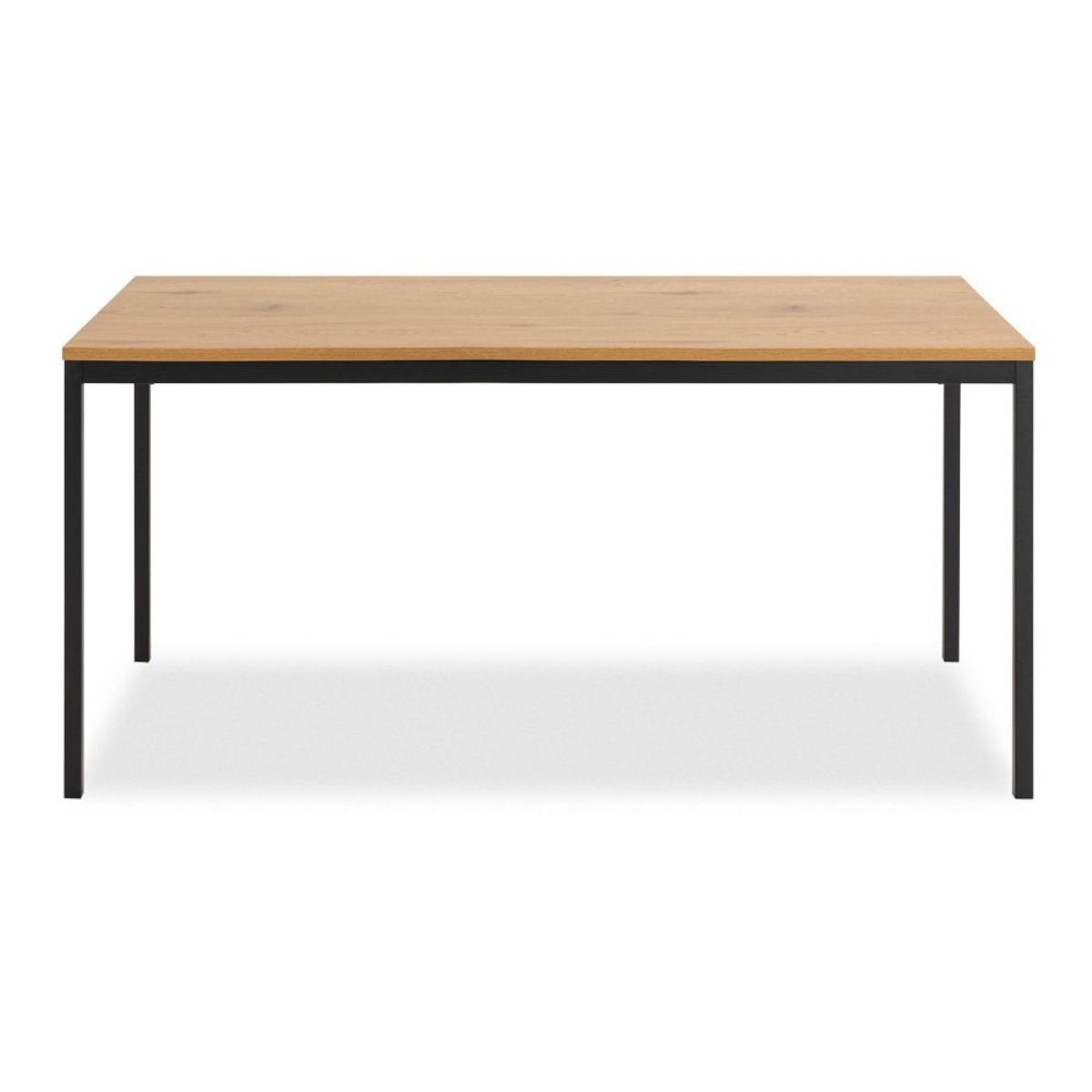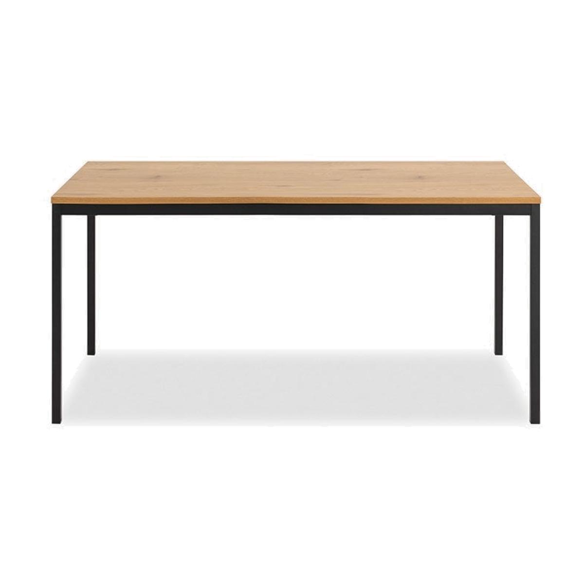 Gather around the Seaford dining table with sleek black metal frame and oak effect top for a very contemporary feel to your dining room - you will have no problem getting your guests to sit around this table. View The Seaford Range