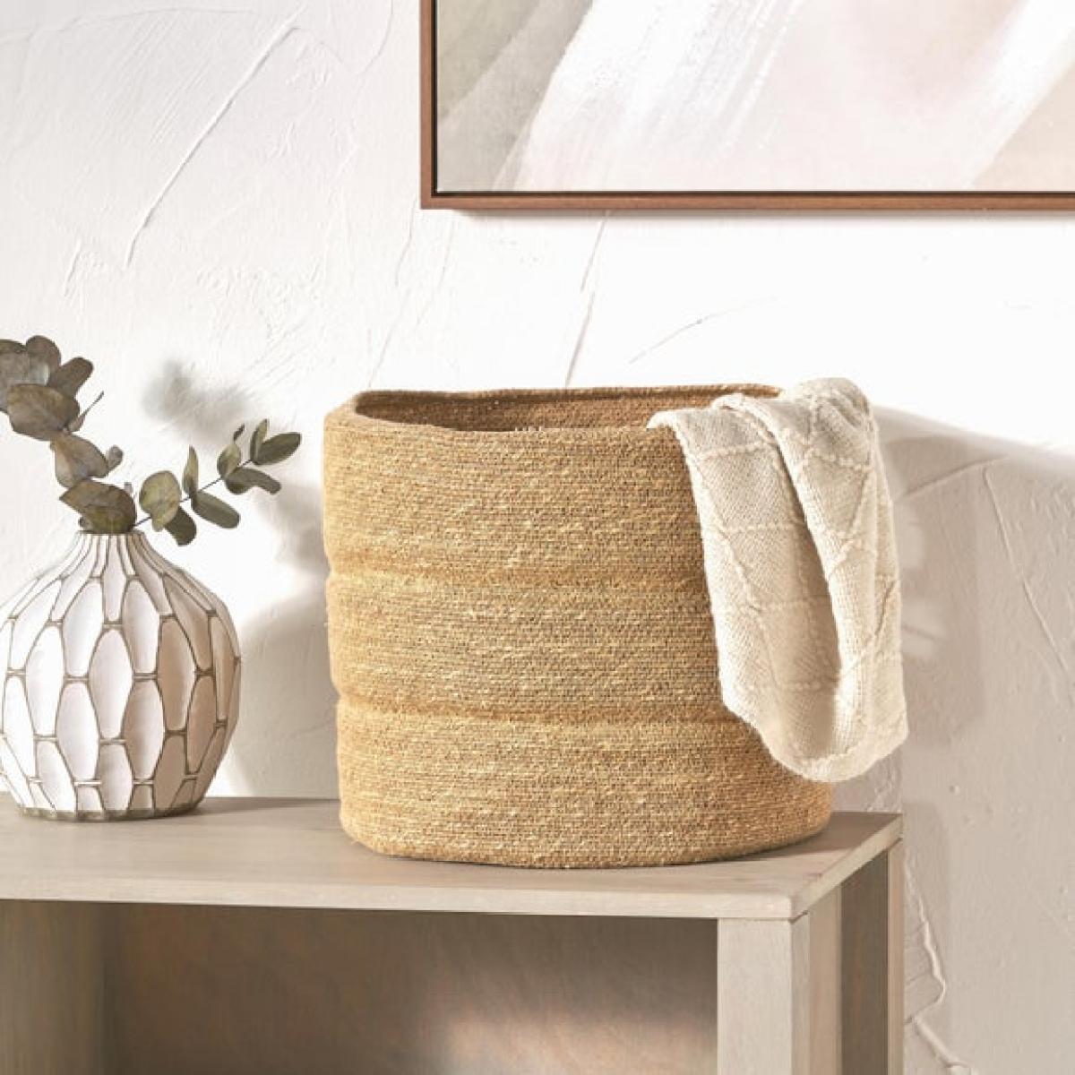 I really like this seagrass basket for its natural texture and versatility. It works particularly well in coastal, boho, or Scandinavian-inspired interiors, adding warmth and an organic touch. Its ribbed design gives it a subtle visual interest without being overwhelming, making it ideal for storing anything from throws and cushions to everyday essentials. Practical styling tips include pairing it with other natural materials like wood or linen to create a cohesive look, and placing it in open shelving or on the floor for easy access. Its neutral tone also makes it easy to blend into both monochrome and colourful schemes, making it a functional yet attractive addition to many home settings.