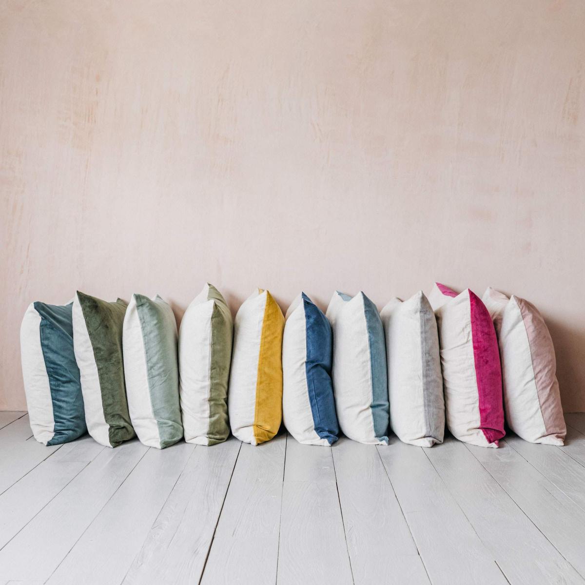 A collection of sumptuous velvet cushions in a wide range of colours to suit every interior style. Finished with natural linen backs, this collection of large luxurious cushions are great for your sofa, armchair or bed.