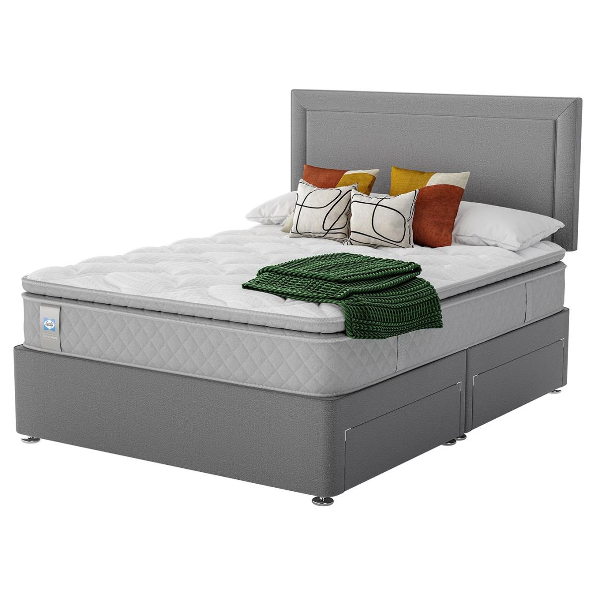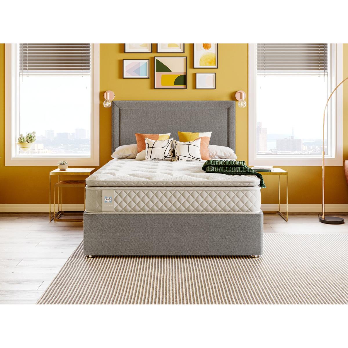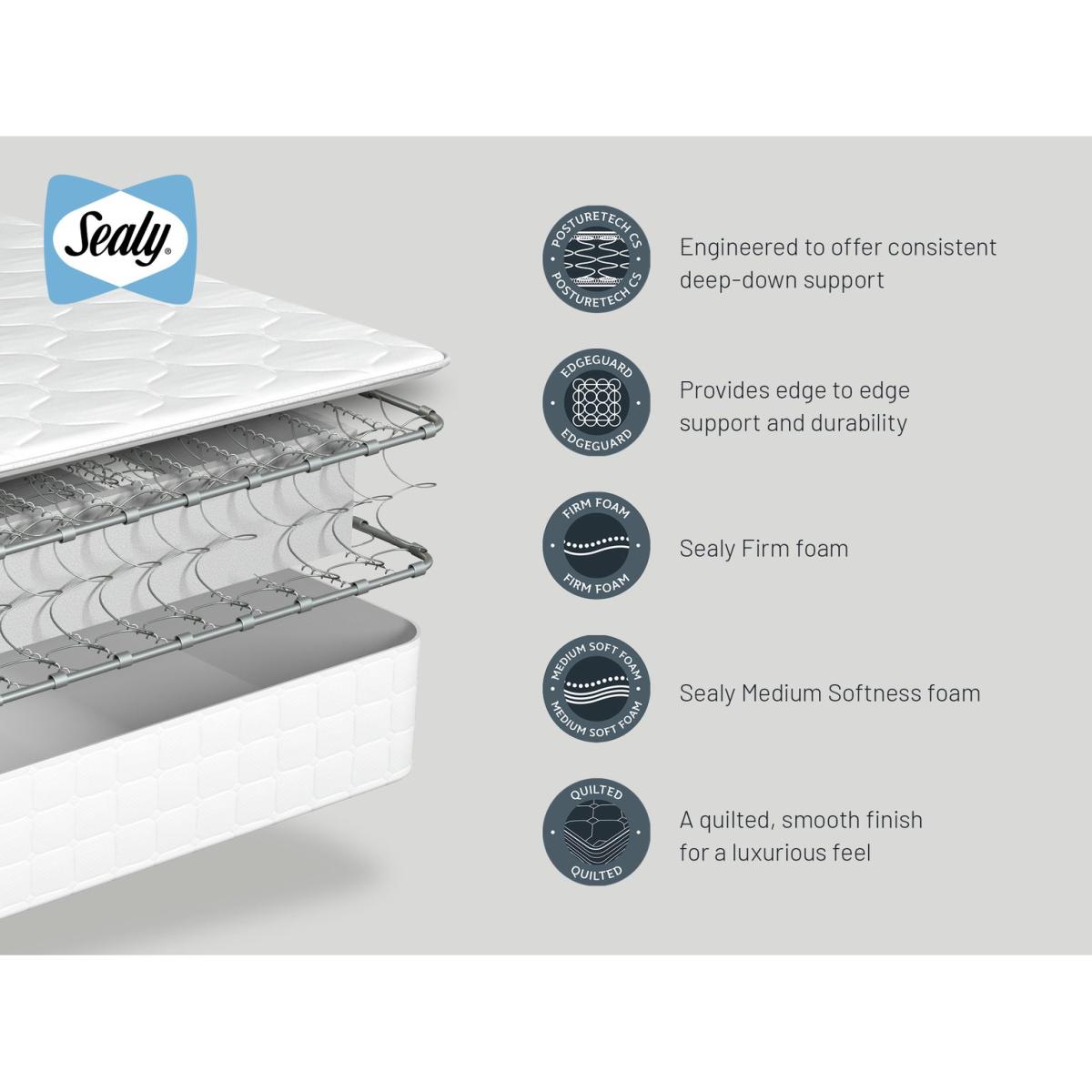 Featuring Sealy's Posture Tech Core Support spring system for deep-down, consistent support. Strong and durable, the springs are twice tempered for long-lasting support from day one and beyond. Edge Guard sits alongside the spring unit to extend the sleep area and provide greater stability. A combination of premium medium and firm foam layers offer cushioning comfort throughout the lifespan of the mattress. Complete with a quilted pillowtop for a sumptuous feel. Made in Britain. All Sealy Ortho Plus mattresses come with a 5 year guarantee for added peace of mind. Part of the Ortho Plus collection. Medium feel. Knit cover with quilted finish. No roll together. Mattress size W150, L200, D23cm. No-turn mattress. Rotate mattress regularly. Made in the UK. Package Dimensions: Package 1 dimensions: H210, W189, D24.5cm. Package 1 weight: 32.1kg. General information: Manufacturer's 5 year guarantee.