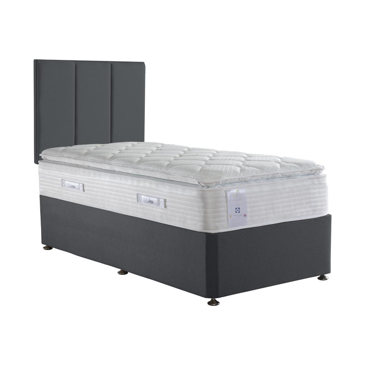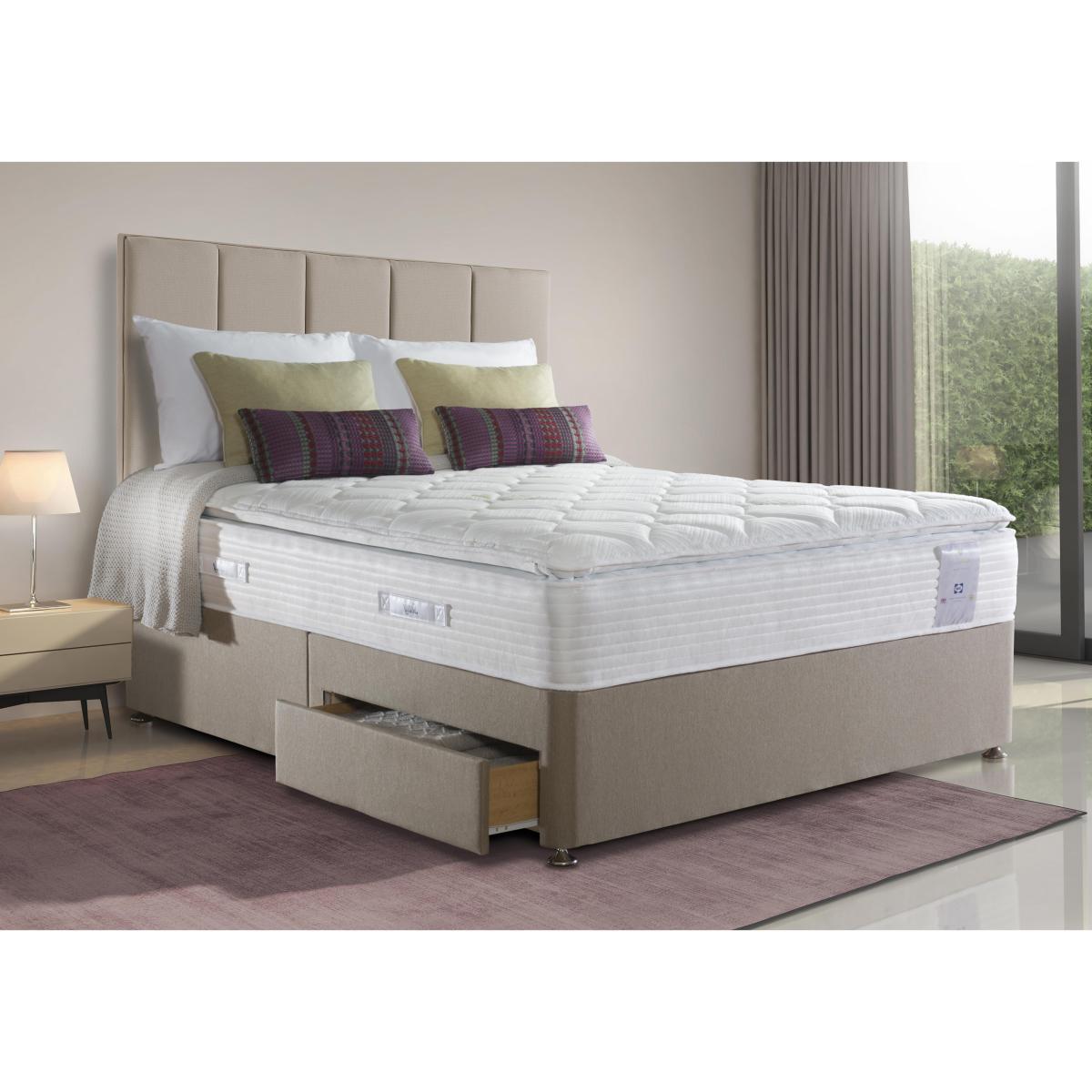 Combining revitalising gel with a superior pocket spring system and edge to edge to support, the mattresses in the Sealy Activsleep Geltex Pocket collection promise superb comfort for those who prefer a softer feel. Paired with stylish platform-top divan bases upholstered in a choice of fabric colours and offering optional storage drawers, pocket spring mattresses incorporate Geltex, a unique breathable gel-infused foam that’s designed to relieve pressure while adding welcome softness. They’re also a great choice for allergy sufferers as the soft knitted covers are infused with Purotex®, which releases friendly bacteria to combat dust mites and other allergens, and Adaptive®, which quickly evaporates moisture for cooler and drier sleeping comfort. Handcrafted and British made, the Sealy Activsleep Geltex Pocket range is a Furniture Village online exclusive and is part of the Sealy Activsleep collection which promotes a healthier lifestyle through energising sleep. Headboard is an optional extra. The hypoallergenic Sealy Activsleep Geltex Pocket Pillow Top 2200 divan set offers a softer-feel luxury mattress on a super-stylish storage base. The platform-top divan base is upholstered in choice of 2 colours and has optional storage drawers. The handcrafted, British-made mattress is 34 cm deep and features a luxurious pillow top, zoned foam, 2200 pocket springs in king size – 1400 super strong springs plus 800 individually-responsive mini springs – and rejuvenating Geltex, a breathable gel-infused foam for pressure-relieving support. Springs are encased in Unirail for edge to edge support. The cover is infused with Purotex® to banish allergens, and Adaptive® which helps wick moisture away faster for a cooler and drier sleeping environment. A Furniture Village online exclusive, the British-made Sealy Activsleep Geltex Pocket Pillow Top 2200 divan set is part of the Sealy Activsleep Geltex Pocket Pillow Top 2200 range of mattresses and divan sets. Product images are representative. Find out more. Did you know?. The mattress should be aired for four hours after delivery to freshen and remove any aroma from storage. It may take time for your mattress to attain its full size once the springs have settled to the correct position. This is due to the mattress being upright during transit. Settlement of fillings and indentations caused by body weight compressing the fillings are natural and not considered defects. This can be minimised by regular rotating (unless yours is a dual tension mattress).