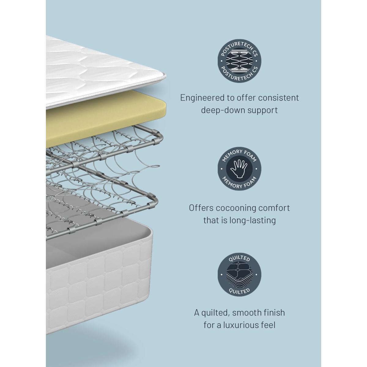 The Upton mattress by Sealy combines restful comfort and long-lasting support, night after night MemorySense® Memory. Sense® foam provides targeted comfort and works alongside the springs to provide cocooning, body moulding comfort that will help you to stay asleep for longer. PostureTech Featuring Sealy’s bespoke Posture Tech spring system at the heart of the mattress, which is designed to provide long lasting and deep-down support as you sleep. The springs react to the weight and movement, applying support where your body needs it the most. Tucked inside the spring unit, Edge Guard works in unison to extend the sleeping area and provide added durability to the mattress. The Upton mattress is a single-sided mattress with a quilted finish and has a medium firm feel. Mattress Care To prolong the life of your mattress and to ensure even wear, rotate it from head to foot regularly. Try before you buy This is an important purchase and it's worthwhile to try your choice of mattress in store to make sure it's right for you. Our store Partners will be able to tell you more about its benefits, and recommend options based on your needs.