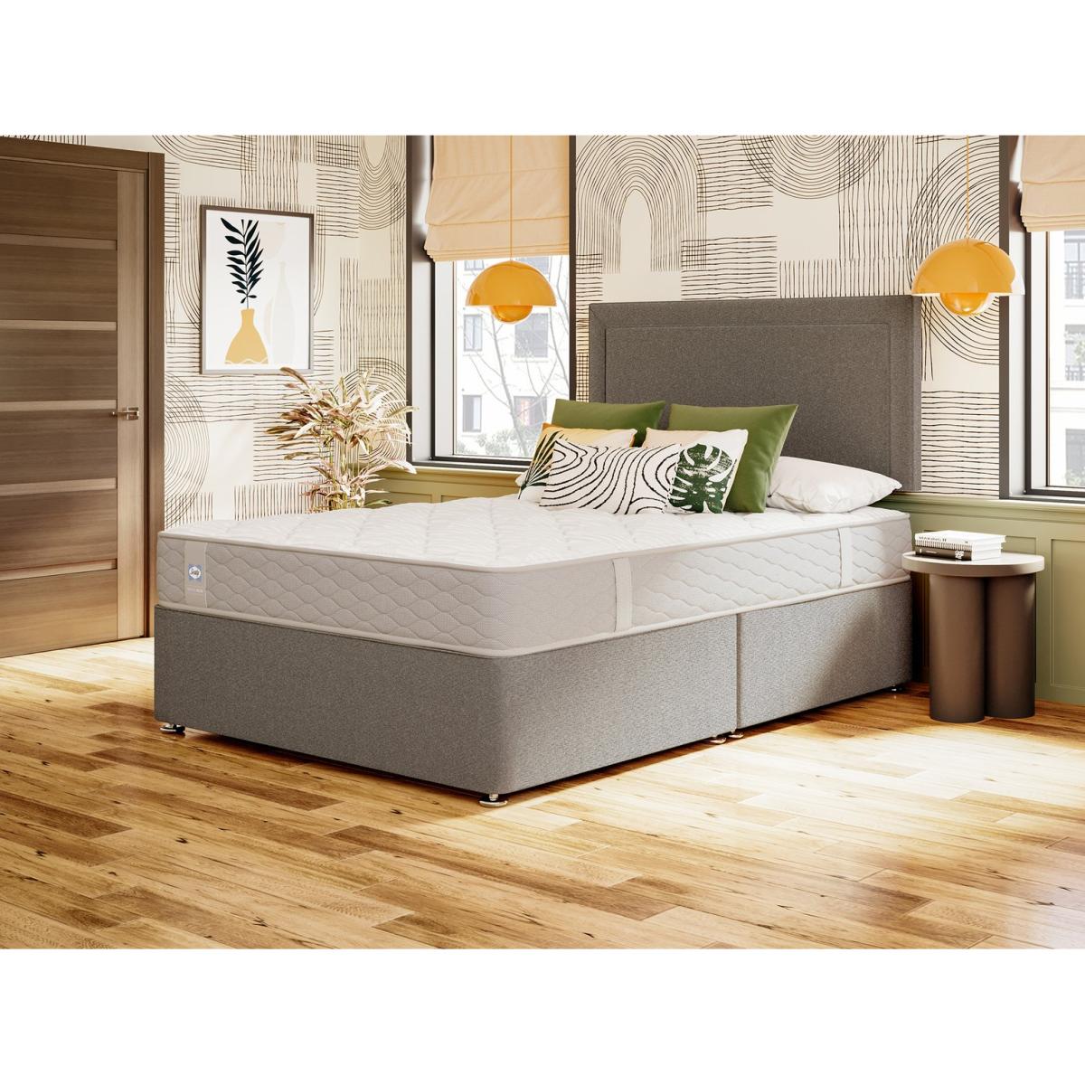 Featuring Sealy's Posture Tech Core Support spring system for deep-down, consistent support. Strong and durable, the springs are twice tempered for long-lasting support from day one and beyond. Edge Guard sits alongside the spring unit to extend the sleep area and provide greater stability. A combination of premium medium and firm foam layers offer cushioning comfort throughout the lifespan of the mattress. Complete with a quilted sleep surface for a smooth finish. Made in Britain. All Sealy Ortho Plus mattresses come with a 5 year guarantee for added peace of mind. Part of the Ortho Plus collection. Medium firm feel. Knit cover with quilted finish. No roll together. Mattress size W90, L190, D23cm. No-turn mattress. Rotate mattress regularly. Made in the UK. Package Dimensions: Package 1 dimensions: H210, W189, D24.5cm. Package 1 weight: 31.9kg. General information: Manufacturer's 5 year guarantee.