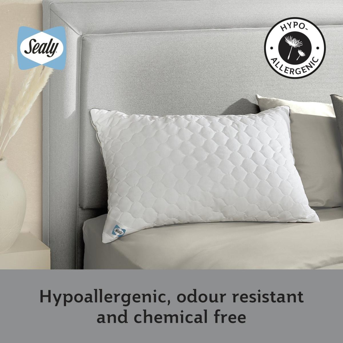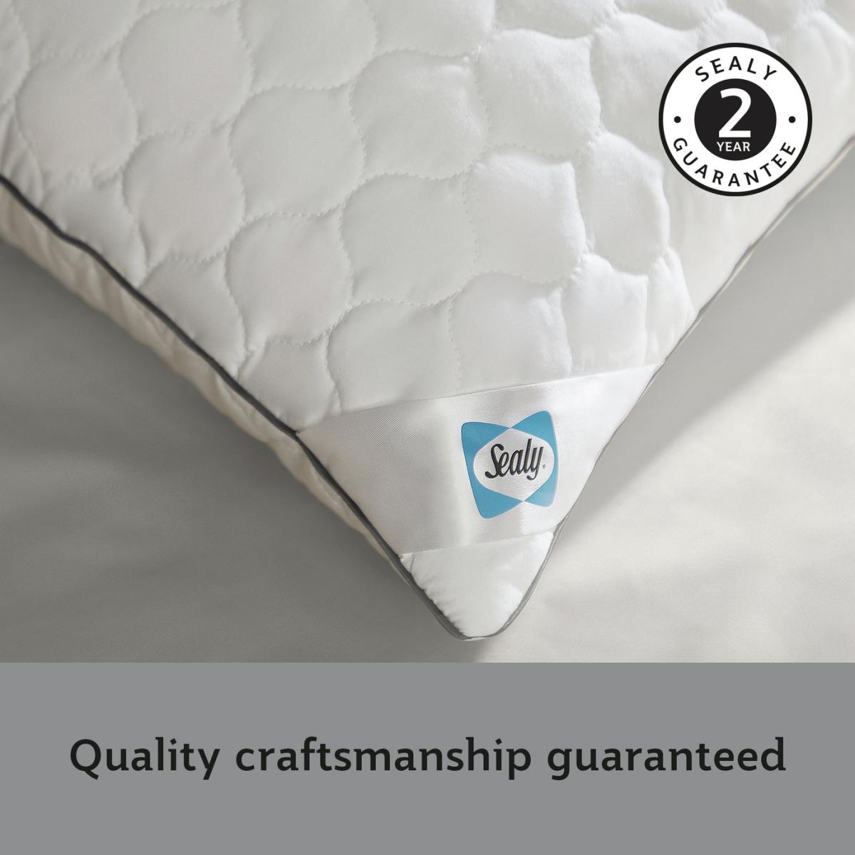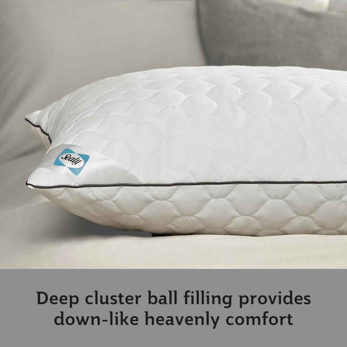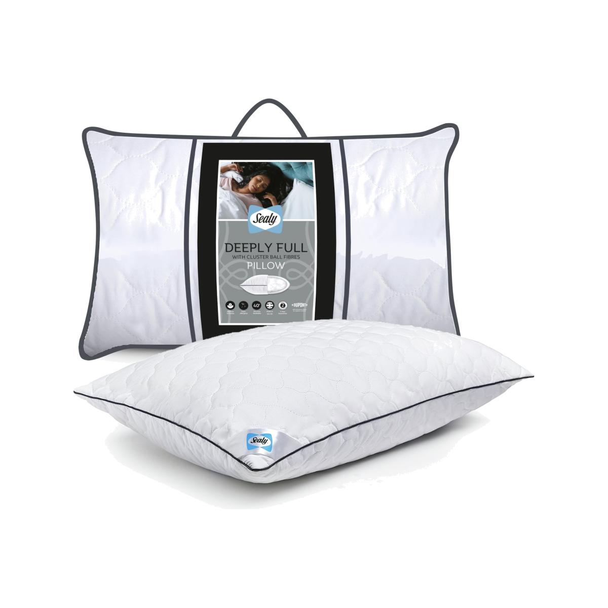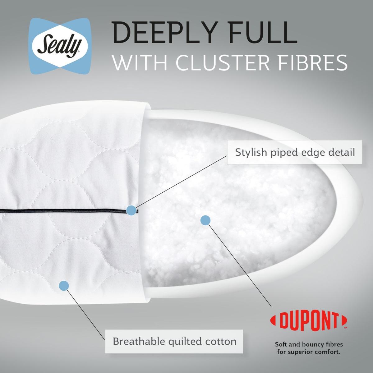 The Sealy Deeply Full Pillow has been expertly crafted to enhance your sleep. Inside the pillow is luxurious DuPont™ cluster ball filling which offers a soft and silky down-like feeling. Generously filled to offer the ultimate culmination of gentle support for the head and neck along with heavenly comfort. The pillow is covered in silky smooth cotton which is breathable and naturally cooling. It's even cushioned for a little bit of extra comfort.