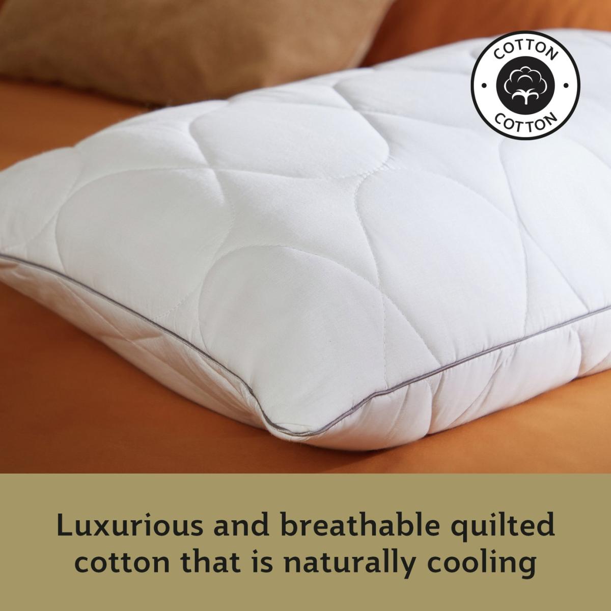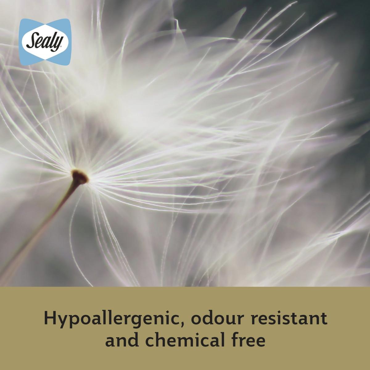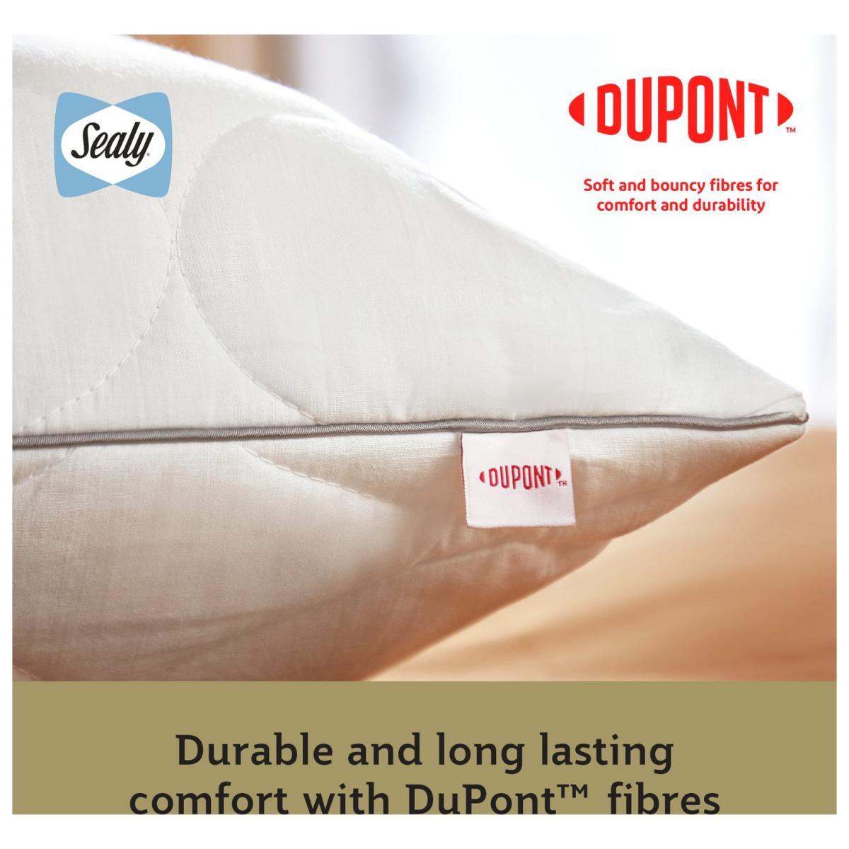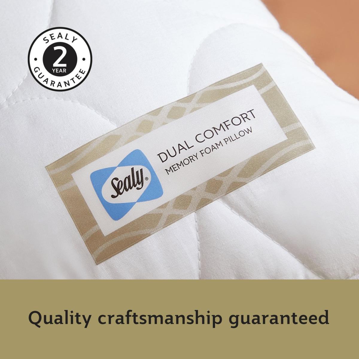 The Sealy Dual Comfort Memory Foam Pillow has been meticulously crafted with a softer side and a firmer side on the reverse so you can choose your comfort. The soft side of the pillow is filled with luxurious DuPont™ hollowfibre which offers a soft, cushioned feel, whilst the reverse features firmer memory foam layer to provide relief and disperse pressure where it is needed most. The pillow is covered in silky smooth cotton which is breathable and naturally cooling. It's even cushioned for a little bit of extra comfort. Sealy is the world's number one bed brand. With a wealth of experience, we are committed to helping everyone enjoy the beauty of quality sleep. Pack quantity: 1. Cover made from 100% cotton. Filling made from 50% cotton and 50% polyester. Memory foam. Medium firm pillow. Suitable for any sleepers. Size L75, W45cm. 0.95kg. Sponge clean only. Suitable for tumble drying.