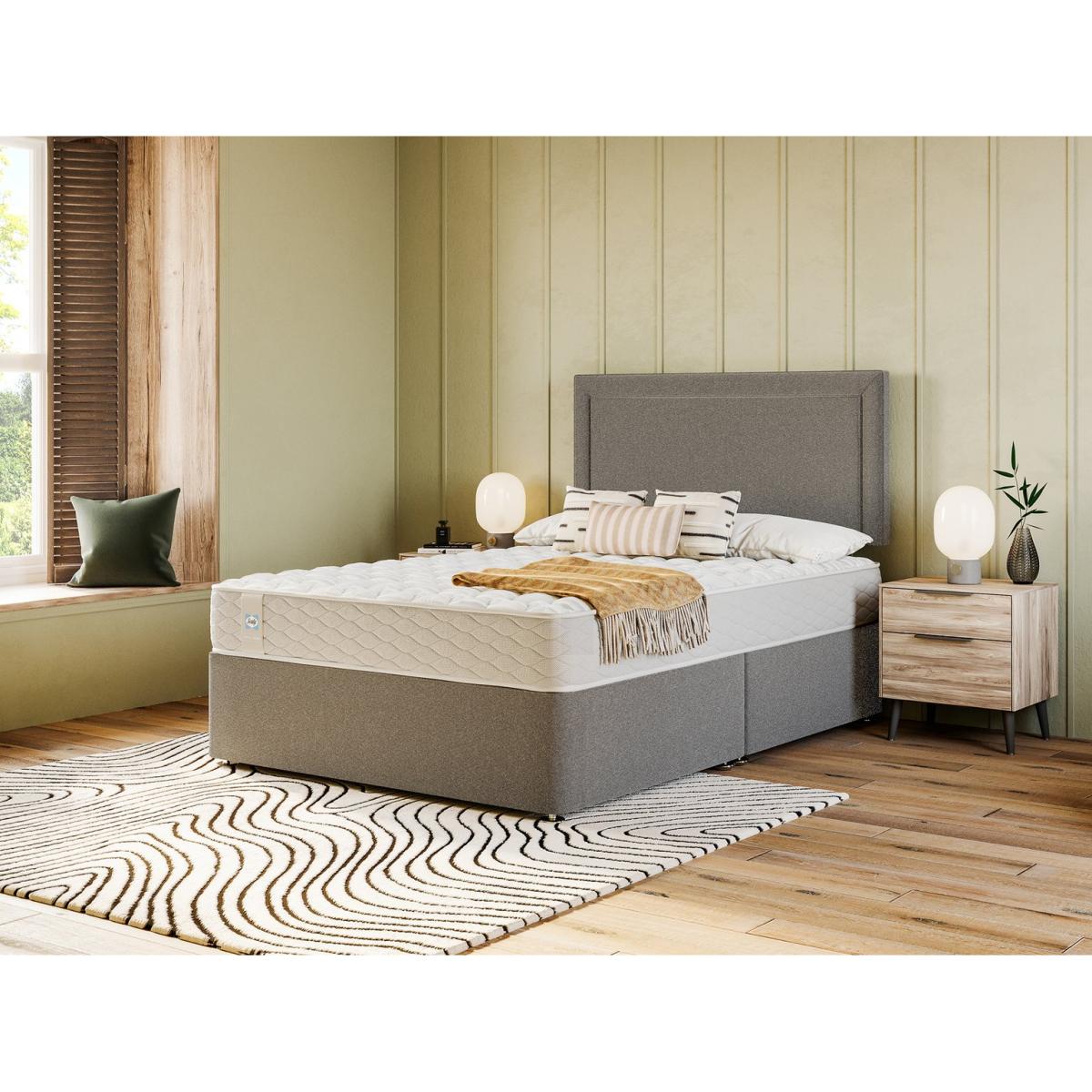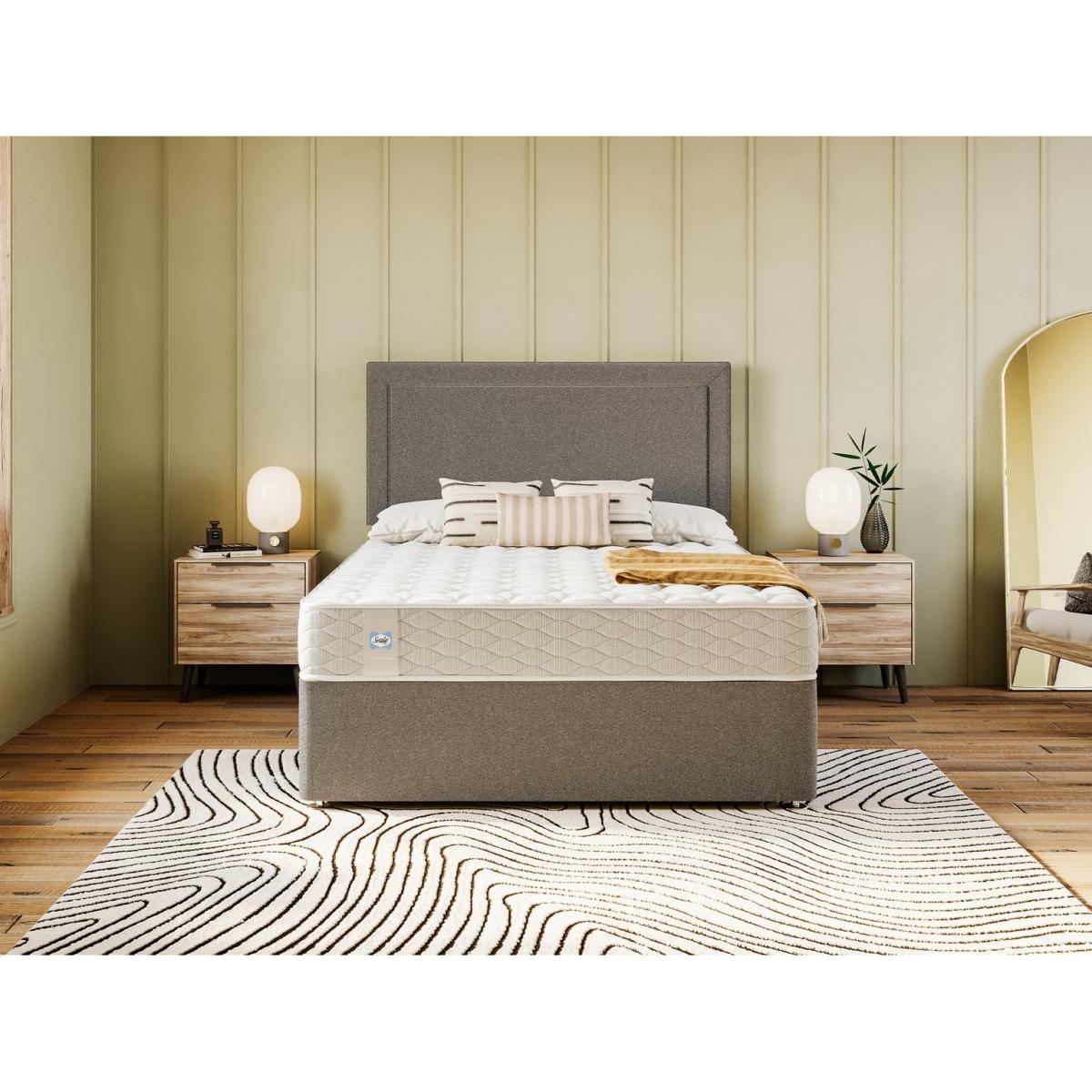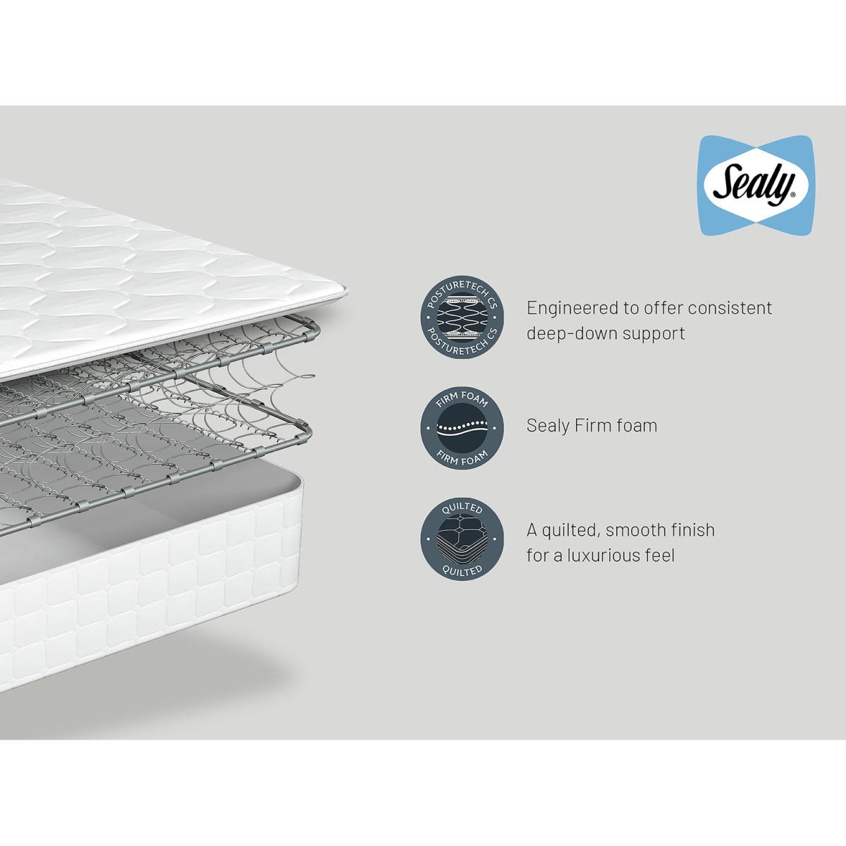 Featuring Sealy's Posture Tech Core Support spring system for deep-down, consistent support. Strong and durable, the springs are twice tempered for long-lasting support from day one and beyond. Paired with a layer of Sealy Firm foam, the mattress offers a firm yet comfortable feel. Complete with a quilted sleep surface for a smooth finish. Made in Britain. All Sealy Ortho Plus mattresses come with a 5 year guarantee for added peace of mind. Part of the Ortho Plus collection. Firm feel. Knit cover with quilted finish. No roll together. Mattress size W150, L200, D21cm. No-turn mattress. Rotate mattress regularly. Made in the UK. Package Dimensions: Package 1 dimensions: H210, W189, D22.5cm. Package 1 weight: 31kg. General information: Manufacturer's 5 year guarantee.