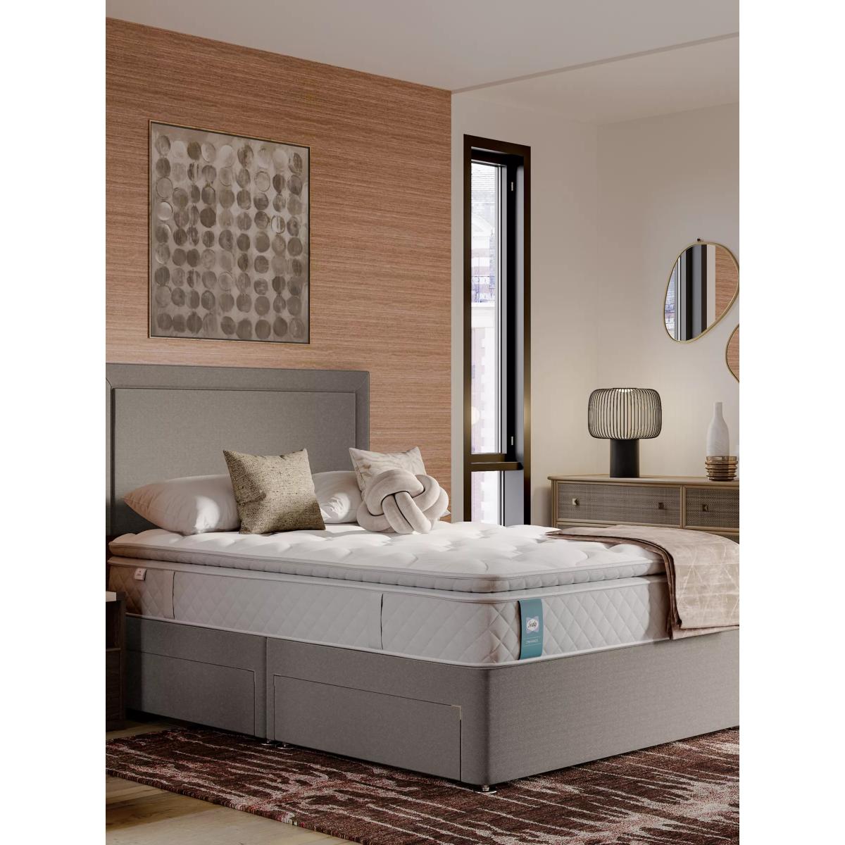 The Bloomsbury mattress by Sealy features a gel-infused comfort layer and is topped with a luxurious plush pillow-top for a cosy and comfortable night’s sleep. Pocket springs offer a gentle level of support. They work independently to respond to your body shape and create a personalised feel whilst you sleep. The springs are sewn together in their own pockets to reduce movement and provide a refreshing night’s sleep. Geltex Combined with a Gel-infused comfort layer which offers pressure relief to the areas of your body that need it most. Geltex is reactive to both shape and movement and offers breathability in abundance, allowing air to circulate through the mattress easily and regulating your temperature as you sleep. The Bloomsbury is a single-sided mattress with a medium-soft feel. Finished with a deep pillow-top, the mattress boasts a softer feel that does not diminish over time. The hand selected fabric finishes the mattress with style, holding the technology securely in place and creating a sumptuous look and feel. Mattress Care To prolong the life of your mattress and to ensure even wear, rotate it from head to foot regularly. Try before you buy This is an important purchase and it's worthwhile to try your choice of mattress in store to make sure it's right for you. Our store Partners will be able to tell you more about its benefits, and recommend options based on your needs.