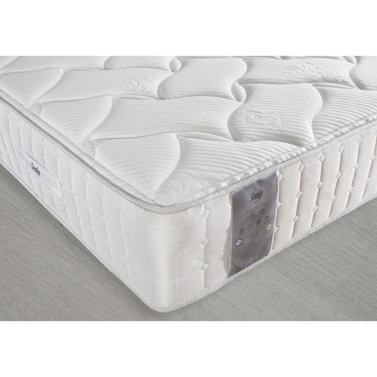 Handcrafted in Britain, the Sealy Latex 2200 collection promises superb comfort along with the convenience of divan base storage. With layers of latex, plus 1400 individually-responsive pocket springs and 800 mini springs in king size arranged in zones to alleviate back pain, this 34 cm deep soft mattress offers luxurious comfort and edge to edge support as well as important pressure relief. It’s also hypoallergenic, thanks to anti-bacterial latex which helps create a healthy sleeping environment, and incorporates Allergy UK-endorsed Sealy Smart Fibres. Upholstered divan bases are available with a choice of no storage, storage drawers in a number of configurations, and end lift ottoman storage. Choose from three colours for the beautiful fabric upholstery. Only at Furniture Village. The technologically-advanced hypoallergenic Sealy Latex 2200 mattress combines soft, pressure relieving latex with responsive pocket springs. This wonderfully soft 34 cm deep mattress has, in king size, 1400 individually-responsive pocket springs layered with 800 mini springs and arranged in zones, a system that’s designed to alleviate lower back pain and improve posture. Springs are encased in Unirail for surface area-maximising edge to edge support. Layers of body-contouring latex provide pressure relief for maximum comfort. This mattress is also an excellent choice for allergy sufferers. Latex is anti-bacterial, and the addition of Allergy UK-endorsed Sealy Smart Fibres helps combat dust mites while creating a temperature-regulated sleeping environment. Finished with a soft knitted cover, the Sealy Latex 220 mattress is part of the Sealy 2200 Latex range which also includes two styles of divan set – with optional storage drawers, and with ottoman storage. Handcrafted in Britain and exclusive to Furniture Village. Please note. The mattress should be aired for four hours after delivery to freshen and remove any aroma from storage. It may take time for your mattress to attain its full size once the springs have settled to the correct position. This is due to the mattress being upright during transit. Settlement of fillings and indentations caused by body weight compressing the fillings are natural and not considered defects. This can be minimised by regular rotating.