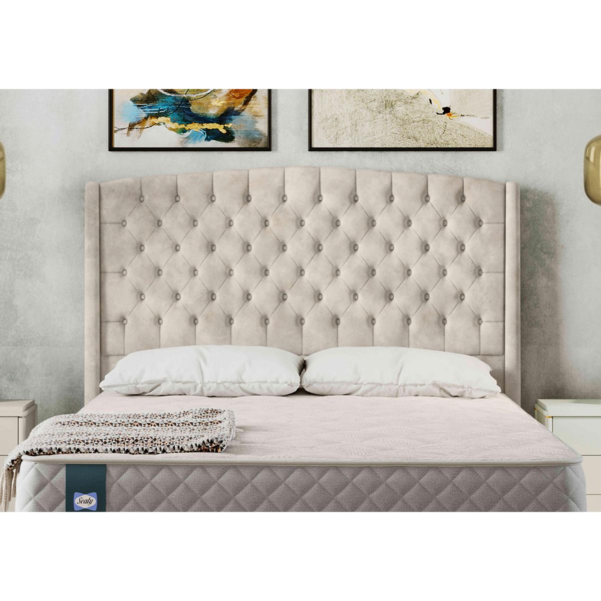 This elegantly tall and sumptuously buttoned floor standing headboard with winged sides is the perfect bedroom centrepiece. Why you'll love it Statement floor standing headboard showcases lavish details. Classic winged profile with sumptuous buttoning. Hand-upholstered in a choice of sophisticated fabrics. Very generously cushioned. Available in double, king and super king sizes. Designed and crafted by the bed experts at Sealy. An online-only exclusive. This floor standing headboard is part of the Sealy range at Furniture Village. What you need to know Compatible with all standard divan bases. Clean upholstery weekly using a soft brush or vacuum with the curtain attachment. Professional cleaning advised for oil- and grease-based stains.