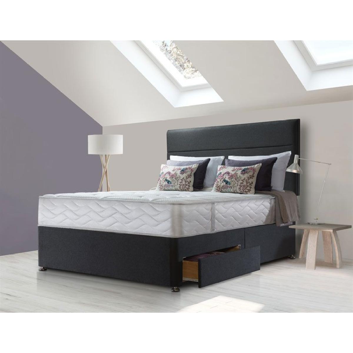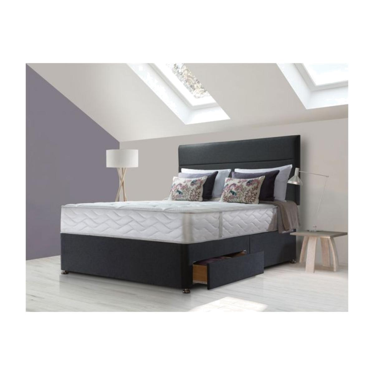 The luxurious Sapphire Latex Superior mattress is micro-quilted with a soft knitted fabric cover. Using Sealy's unique technologies to guarantee a cool, fresh, hypoallergenic sleeping environment which is ideal for those suffering with allergies. The mattress is made up of 10 layers consisting of - Polyester, Soft foam, Dipryl, Soft Foam, Dipryl, 7 zone foam, Latex, Dipryl, Rebound Polyester (underside) and Topaz (underside). Featuring a Posturepedic Spring System. Sealy’s advanced spring system aims to provide the underlying support your body needs for a refreshing night’s sleep. Gradually getting firmer as pressure increases, the springs are designed to improve spinal alignment and reduce aches and pains. Latex is the ultimate natural elastic material, which conforms exactly to your bodys weight and shape, providing the optimum level of support for a healthy night's sleep. The Latex allows the spinal column to rest in its natural position and your blood circulation stays optimal, so your body is able to fully relax. Latex allows for maximum breathability, essential for removing excess heat and moisture that will ensure you enjoy night after night of undisturbed sleep. For those who struggle with allergies, latex provides a safe option as it is naturally hypoallergenic and anti-microbial. Overall, latex provides a yielding, giving and conforming quality, so is a perfect choice for those looking for comfort and support. Sealy Smart Fibre mattresses with Purotex hold Allergy UK’s Seal of Approval endorsement. It is so important that those suffering with house dust mite allergy are able to confidently choose a mattress that will help them to reduce the allergens in their bedroom, in the knowledge that it has undergone stringent scientific testing. This is delivered with essential elements, Purotex microcapsules release friendly bacteria into the fabric of the mattress to reduce mould and moisture. The 100% natural solution for a fresh, hygienic and dust-mite free mattress and endorsed by Allergy UK. 7 Zoned Construction - Zonal technology correctly supports and aligns the spine in its natural shape, helping to reduce aches and pains. Sealy Posturepedic are the only sleep systems endorsed by the world renowned Orthopedic Advisory Board. Higher quality and longer lasting with the high density foam strip placed inside the edge of the mattress springs, prevents the mattress from sagging and gives both longer life to the mattress and a more supportive sleeping area. The Micro-Quilted Border is method of securing the mattress fillings, where the side comfort layers are quilted together providing a smoother looking border edge. Available in Single, Double, King and Super King sizes. With no storage, 2 drawer, 4 drawer or 2+2 drawers storage options. Max Weight for Drawers:Small Drawer - 6kg. Large Drawer - 14kg. End Drawer - 18kg Mattress and divan bed base - Headboard (pictured) is not included in this price and is sold separately Mattress ticking type - Knit Mattress Ticking composition - Viscose Polyester Mattress Depth - 30cm Firmness Rating - Medium/Latex Micro quilted mattress Posturetech core and 7 zone spring support system No turn mattress - simply rotate from head to toe to extend the mattress' life span Sealy's 5 Year Guarantee *All screens vary in colour reproduction and whilst every effort has been made to display the colour as accurately as possible it is for guidance only.