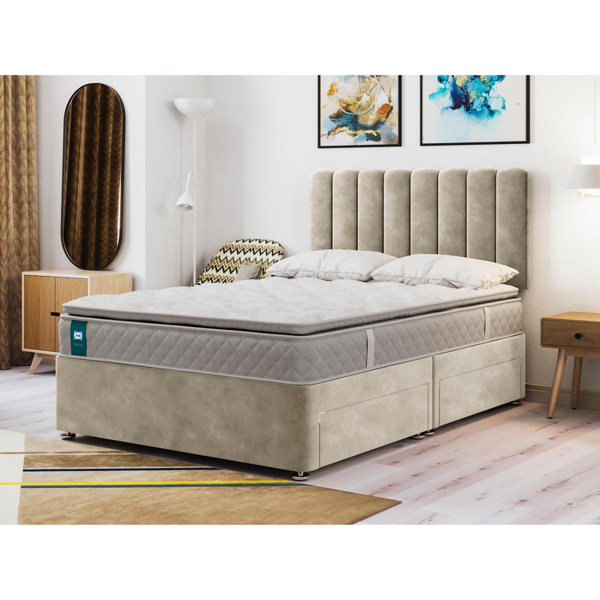 Give your bedroom a pop of modern glam style with this stylish strutted headboard. Available in a wide choice of upholstery fabrics, it’s an easy way to transform your bedroom. Why you'll love it Gorgeous strutted headboard delivers style and comfort. Fluted design with scalloped edges for a modern glam look. Hand-upholstered in a choice of sophisticated fabrics. Very generously cushioned. Available in single, double, king and super king sizes. Designed and crafted by the bed experts at Sealy. An online-only exclusive. This strutted headboard is part of the Sealy range at Furniture Village. What you need to know Compatible with all standard divan bases. Clean upholstery weekly using a soft brush or vacuum with the curtain attachment. Professional cleaning advised for oil- and grease-based stains.