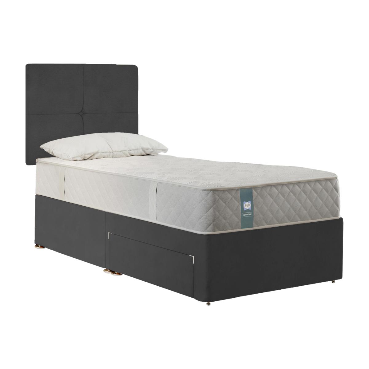 If you’re in search of a nicely supportive bed with that traditional bouncy feel, then take a look at the incredible-value and beautifully crafted Sealy Waltham range. Featuring Sealy’s proprietary Posture Tech spring system for even weight distribution and zoned support as well as ultra-comfortable, pressure-relieving latex layers, the collection’s mattresses promise really refreshing sleep. They also feature Sealy’s Edge Guard innovation that maximises mattress sleeping surface. Pair yours with one of the range's smart and stylish divan bases with optional storage drawers or a roomy ottoman storage space. Handmade in the UK, the Sealy Waltham range is a Furniture Village online exclusive. Enjoy the comfort of Sealy's Posture Tech spring system and latex layers along with a stylish divan base with optional storage drawers. Why you'll love it Superb support and comfort meets style and storage in this great-value divan set. Mattress has Sealy’s Posture Tech spring system for even weight distribution and zoned support. The latex filling gives you pressure relief and a resilient bouncy feel. Sealy’s Edge Guard extends the sleeping area and ensures mattress durability. The smooth quilted surface adds an extra touch of luxury. With a beautifully upholstered platform top divan base. In single, double, king and super king sizes. Built-in storage drawers available in double, king and super king sizes. Handmade in the UK. A Furniture Village online exclusive. This divan set is part of the Sealy Waltham range. What you need to know Headboard is an optional extra. Mattress type: Posture Tech spring. Depth: 29 cm. Firmness: Medium. Pillow top: No. Fillings: Latex. Cover: Knit fabric. Requires turning: No. Base type: Platform top with optional storage drawers. Sizes: Single, double, king and super king. Mattress care:Air for 4 hours before using to remove any odour. Allow at least 4 hours for springs to settle and for mattress to attain its full size. Indentations caused by settlement of fillings or body weight are normal and are not considered defects. If used on a slatted bed frame, the space between slats must be no wider than 7.5 cm. Spaces wider than this may cause excess dipping of the mattress and invalidate the guarantee. Always use a mattress protector. Rotate regularly. Divan base care: Clean upholstery weekly using a soft brush or vacuum with the curtain attachment. Professional cleaning advised for oil- and grease-based stains. Some fabrics can show wear on areas of more use or in direct sunlight.