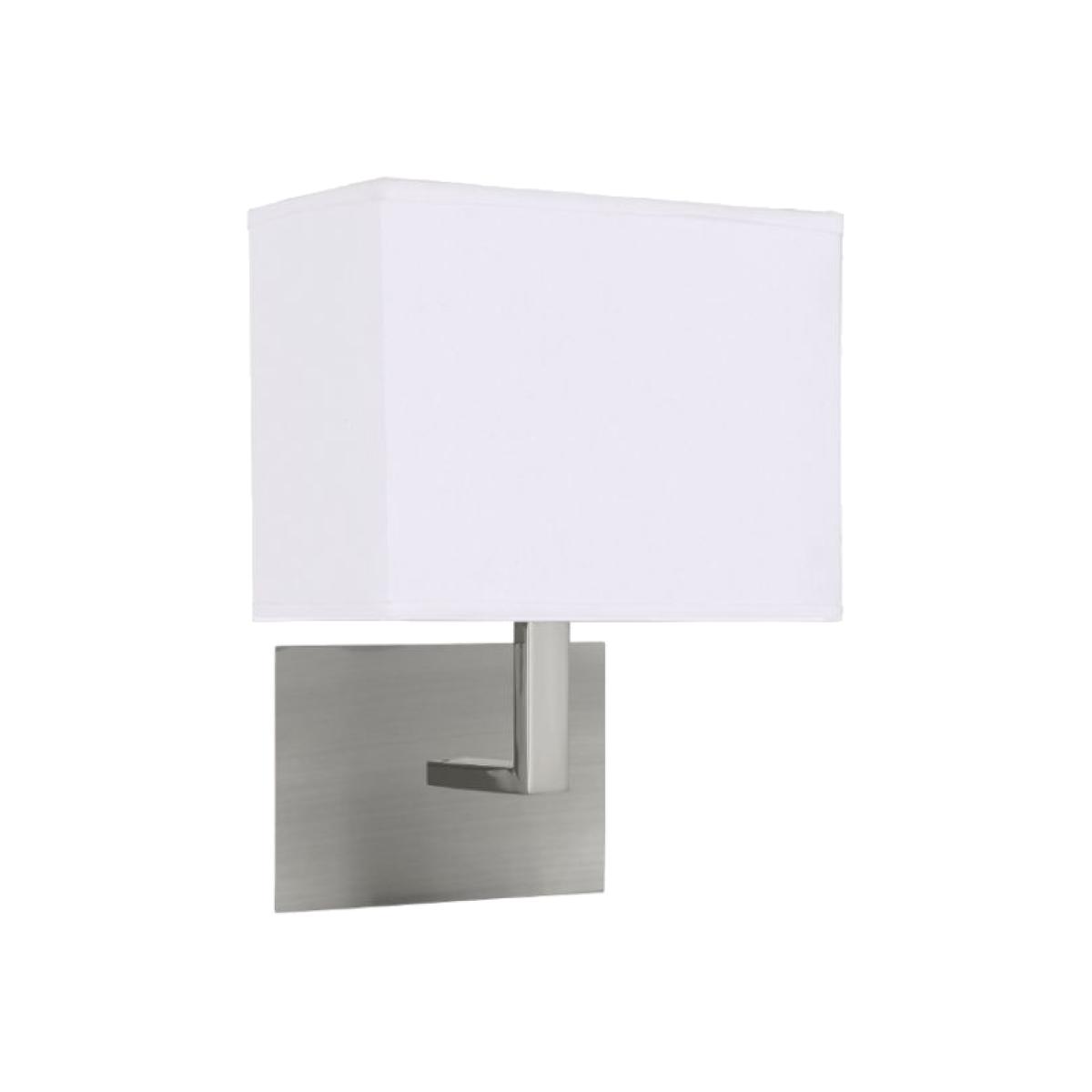 This Satin Silver Wall Light with White Rectangular Fabric Shade is stylish and classic. It has a rectangular satin silver finish wall plate and right angled arm, with a slim oblong white drum shade above. It provides a nice ambience and is controlled by a handy rocker switch. Features: Suitable for an E27 GLS twist bulb Dimensions: 255mm H x 200mm W Wattage: 60w Rocker Switch Fabric shade