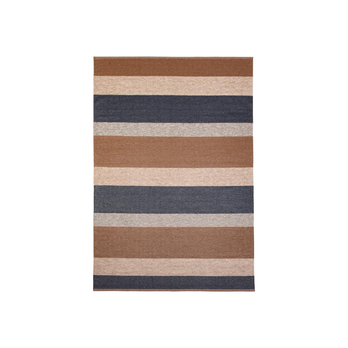 Seasons rug cacao (brown, black) from Brita Sweden is made in Sweden using old, traditional craft methods, and is a woven plastic rug with thick, block-like stripes. The durable but soft and comfortable carpet can be placed both outdoors and indoors. The rug is available in several different sizes and can easily be matched with different interior design styles and colours.