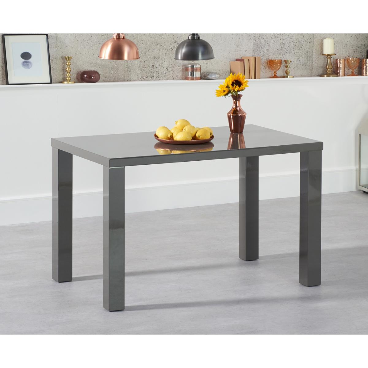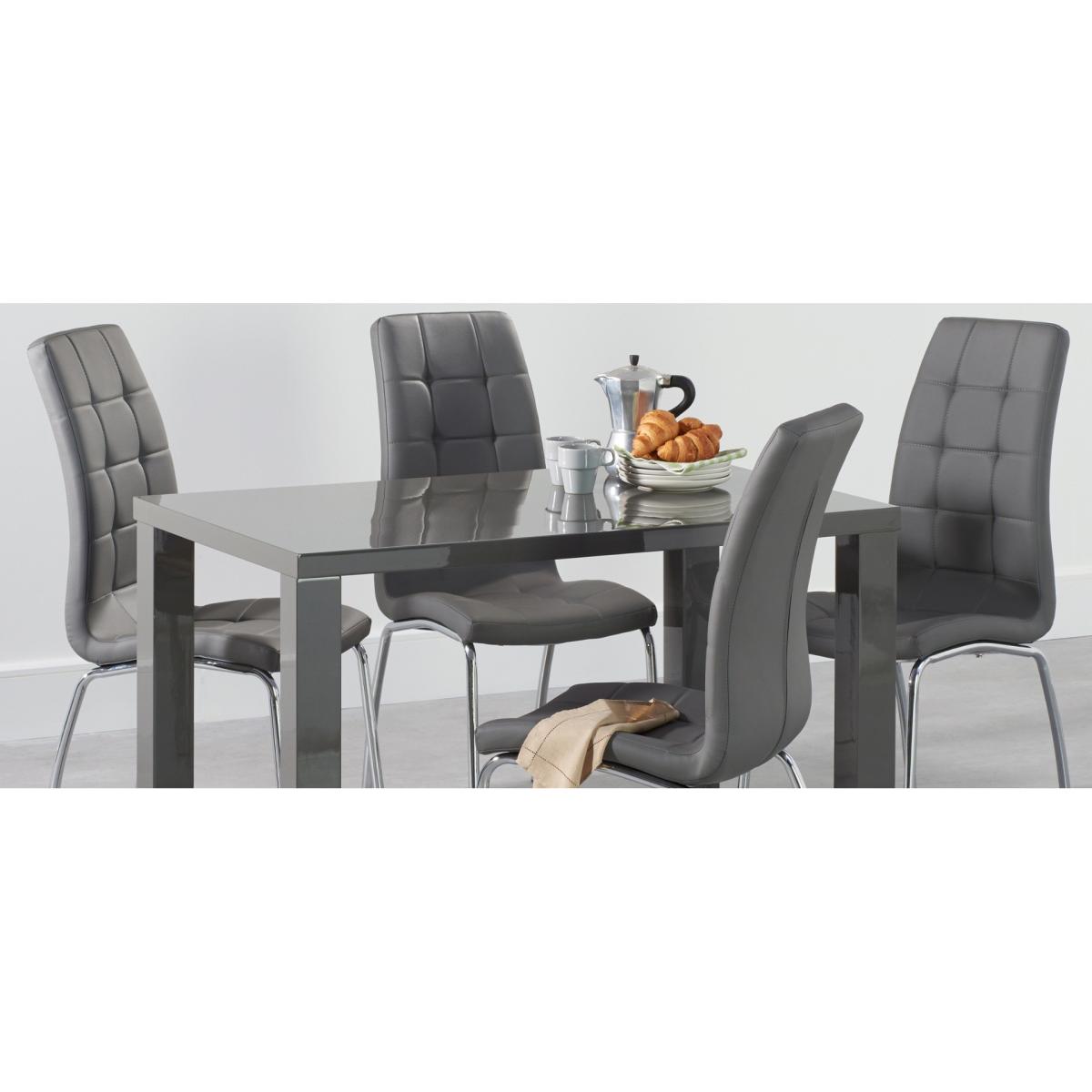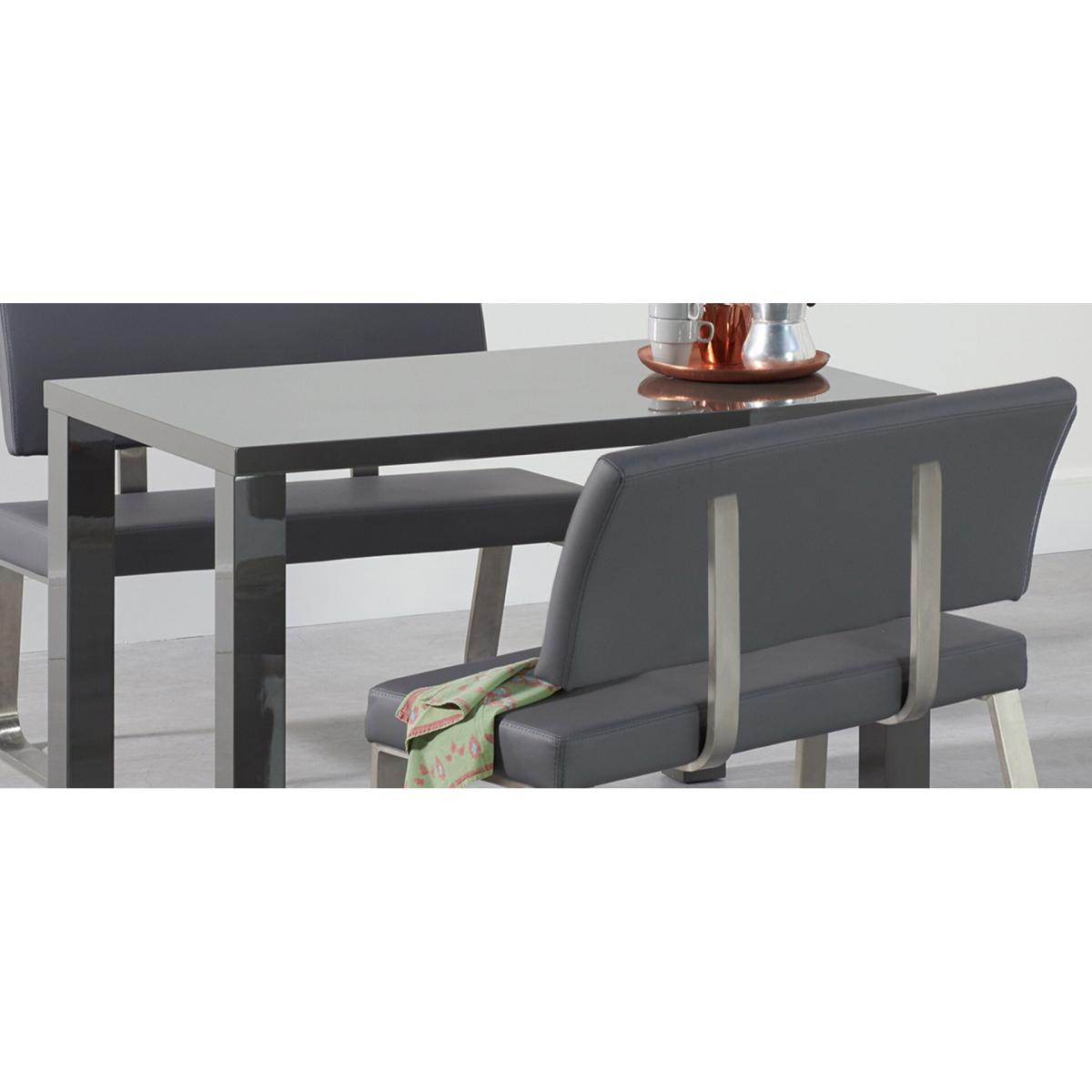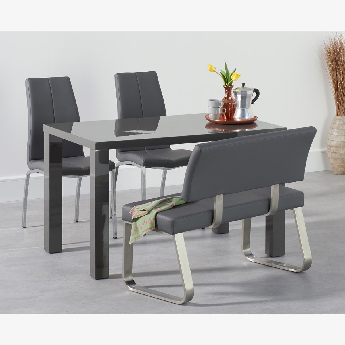 Seattle 120cm Dark Grey High Gloss Dining Table with 2 Grey Marco Chairs with 2 Grey Benches
