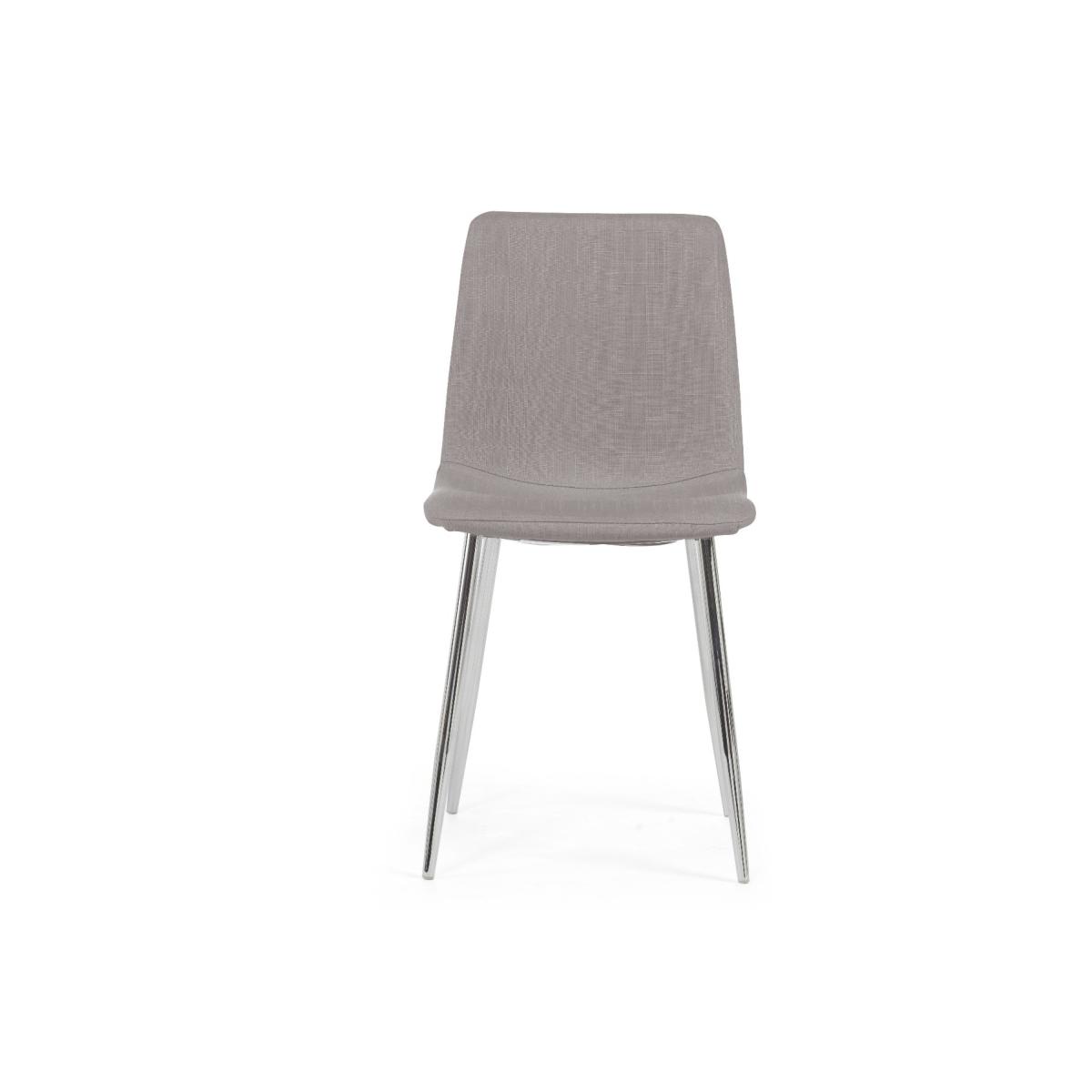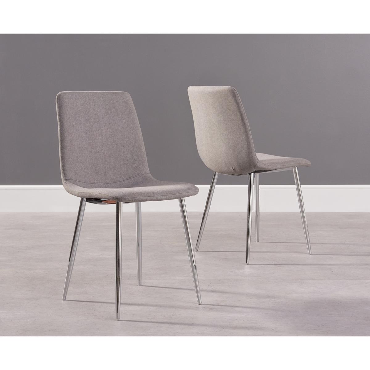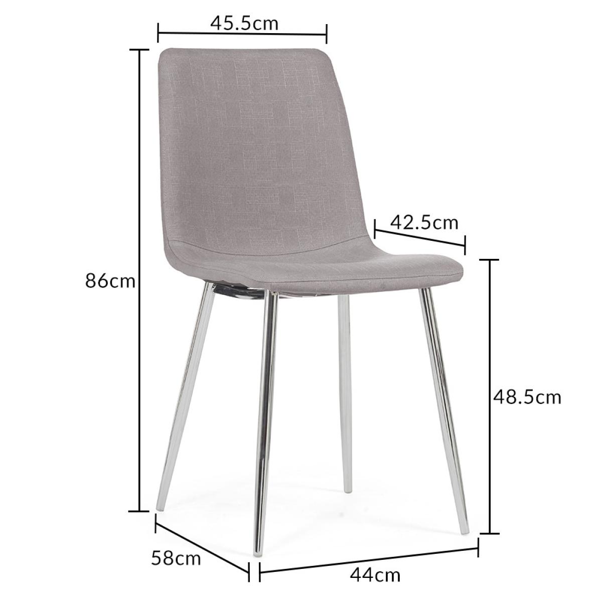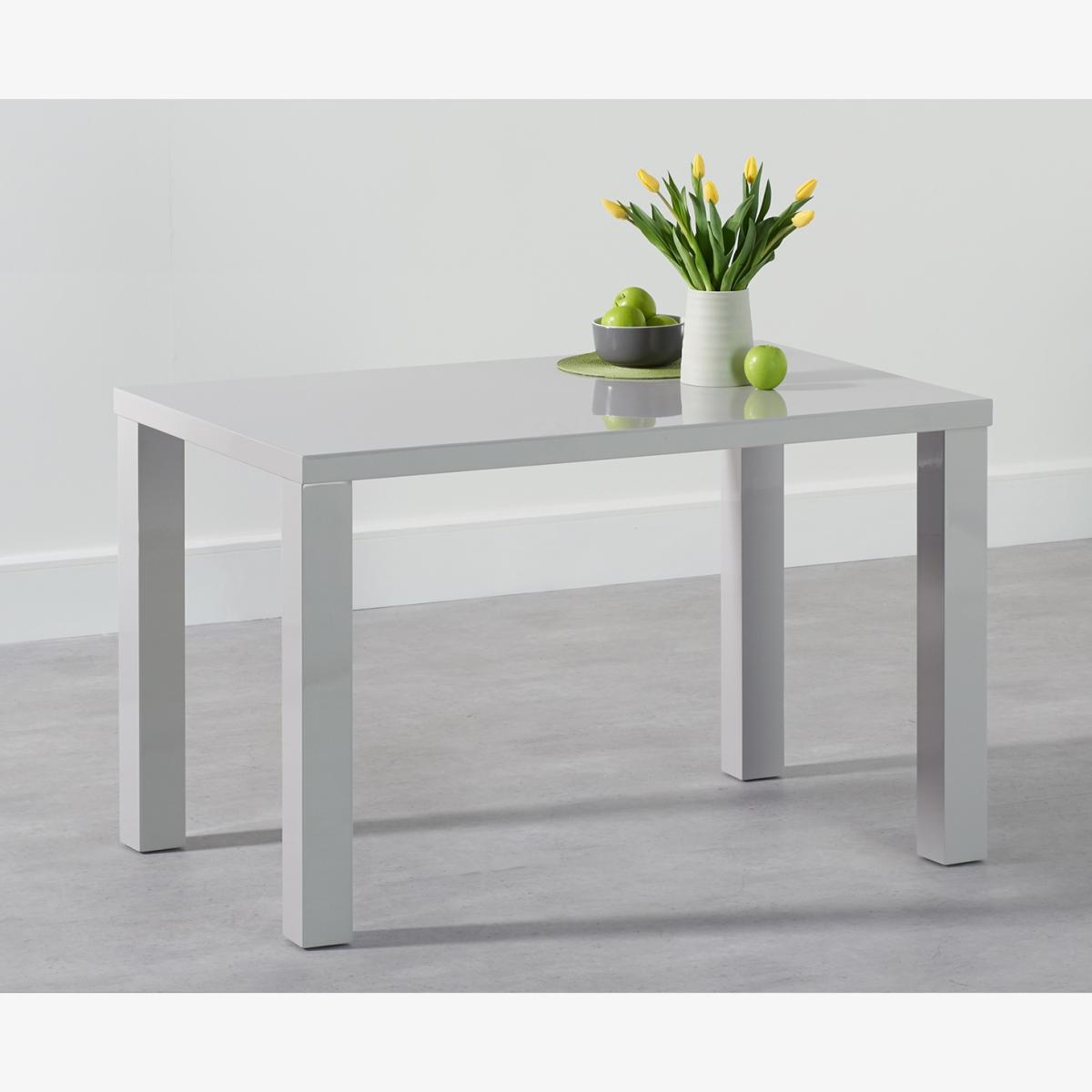 The Seattle 120cm High Gloss Dining Table with Astrid Chairs features a light grey, high gloss finish and striking upholstered chairs for ultimate comfort