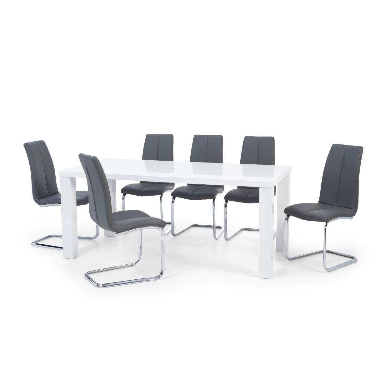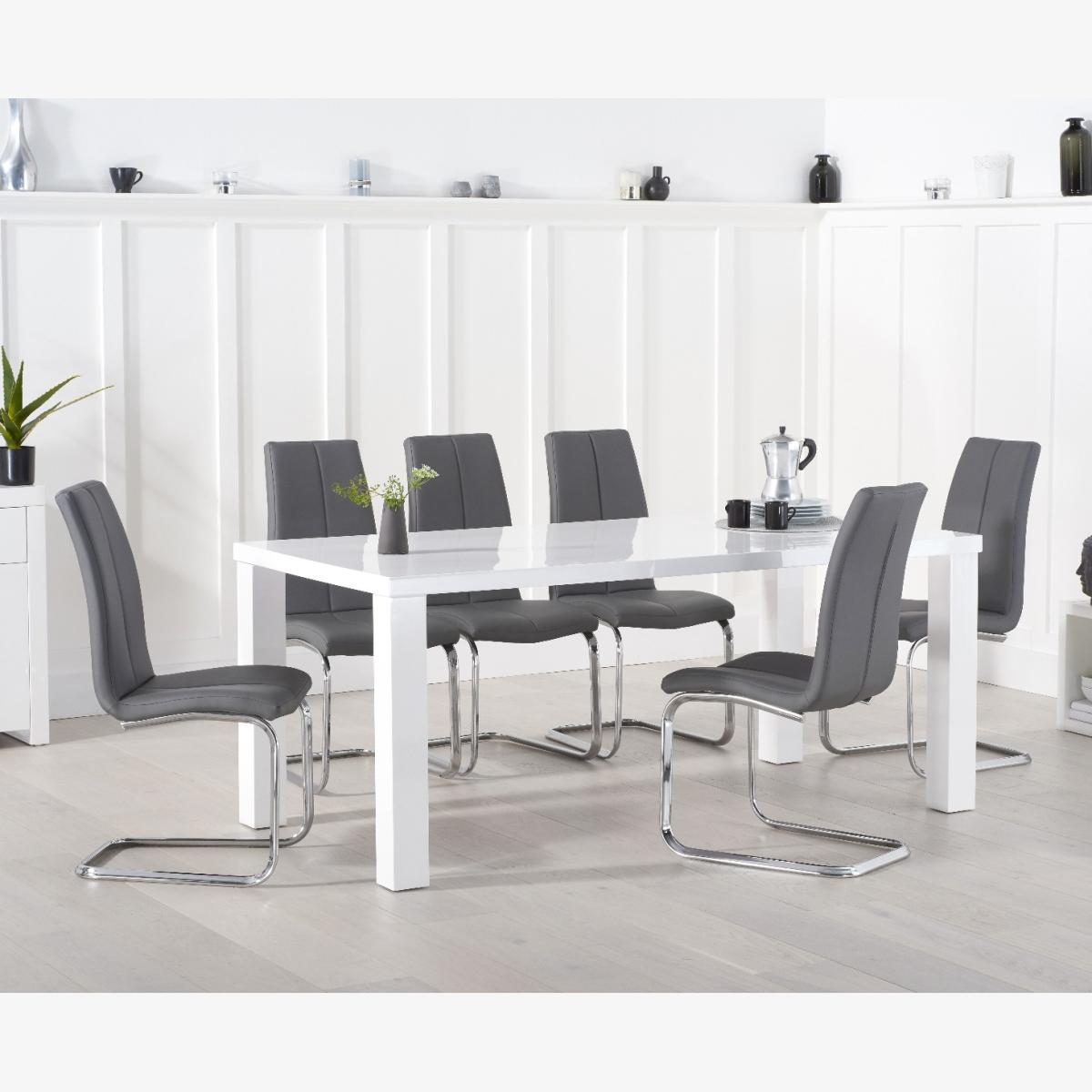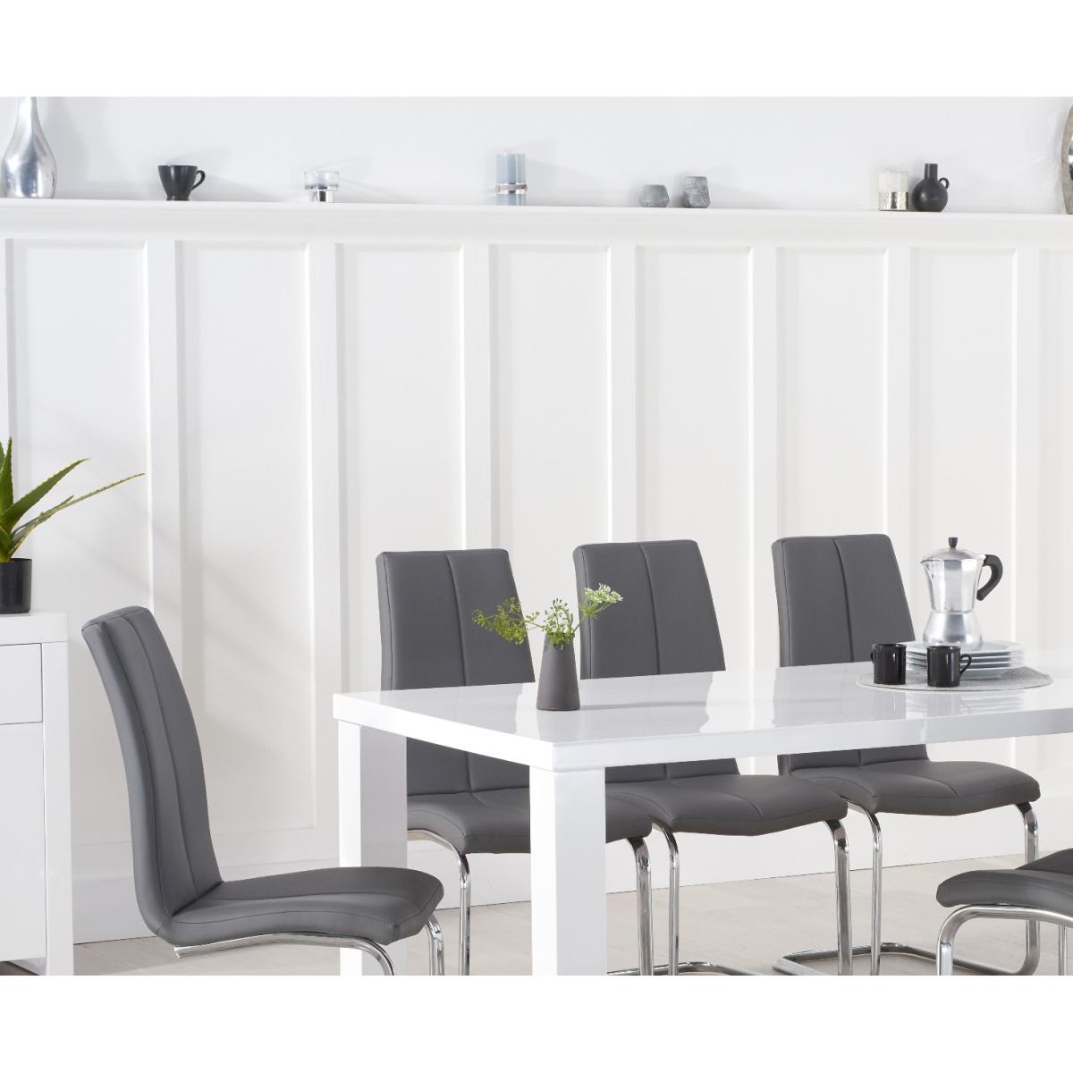 Seattle 200cm White High Gloss Dining Table with 10 Grey Gianni Chairs