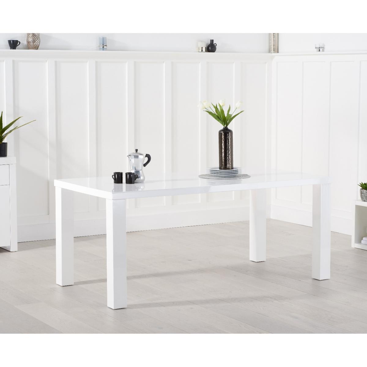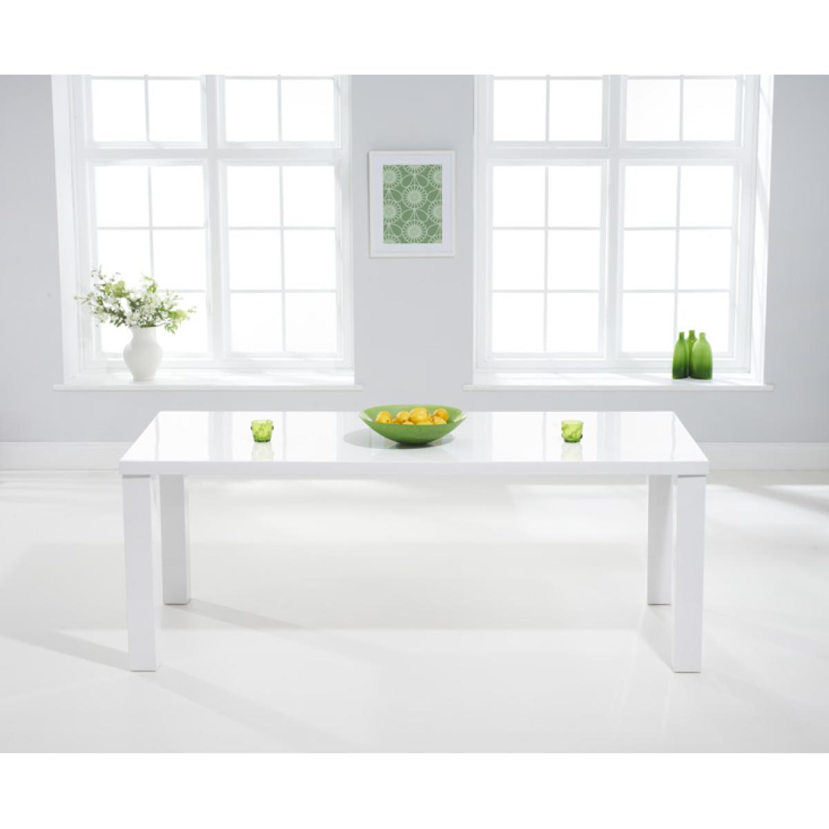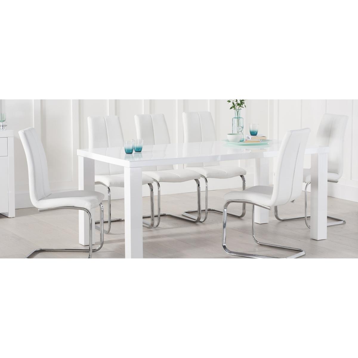 Seating 10 people, the Seattle 200cm White High Gloss Dining Table with Gianni Chairs is a chic modern dining set. The solid wood table features a white high gloss finish and is complemented by faux leather chairs in a choice of colours.