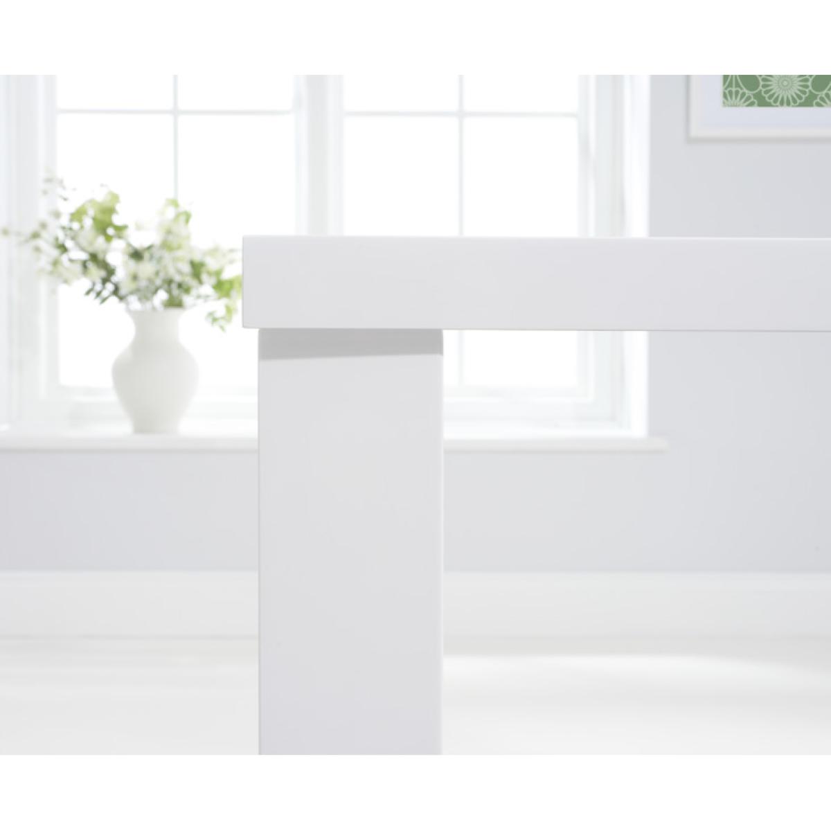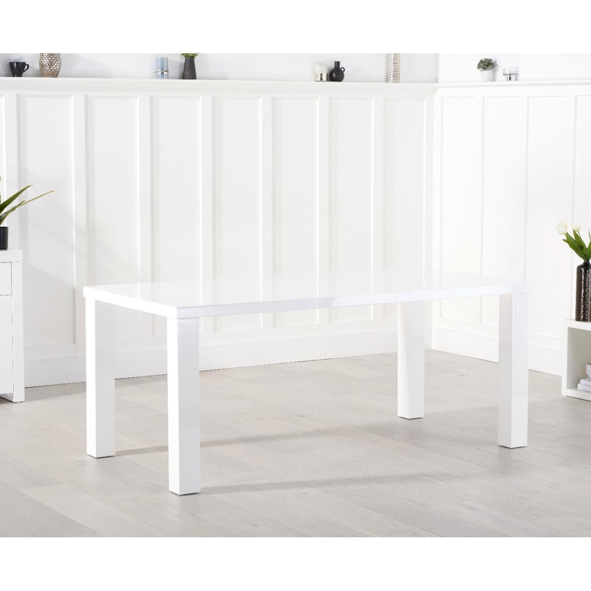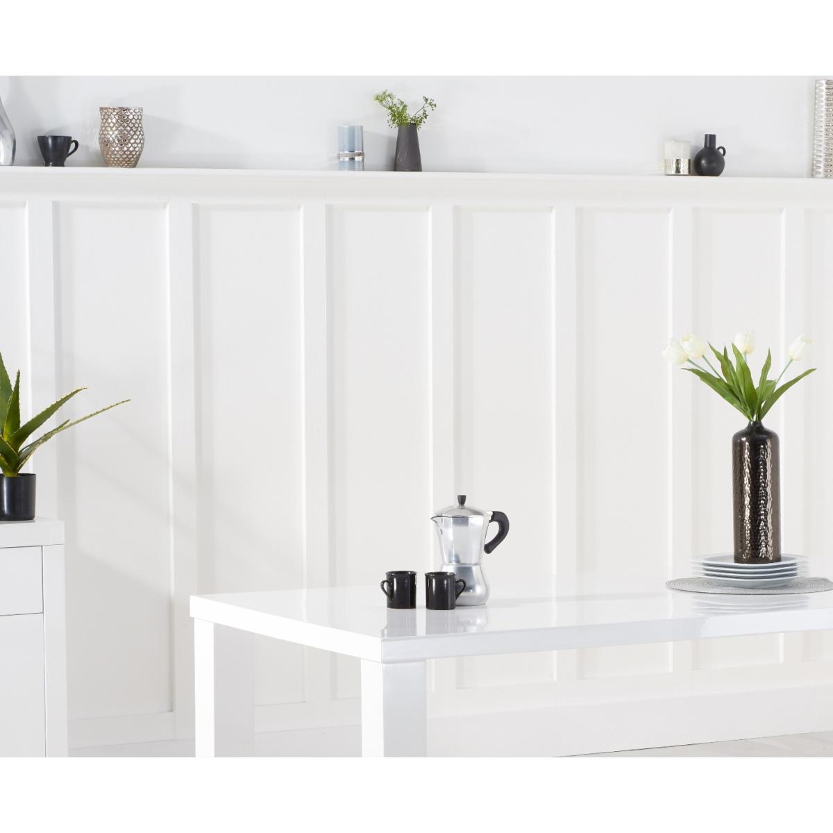 Seating 10 people, the Seattle 200cm White High Gloss Dining Table with Gianni Chairs is a chic modern dining set. The solid wood table features a white high gloss finish and is complemented by faux leather chairs in a choice of colours.