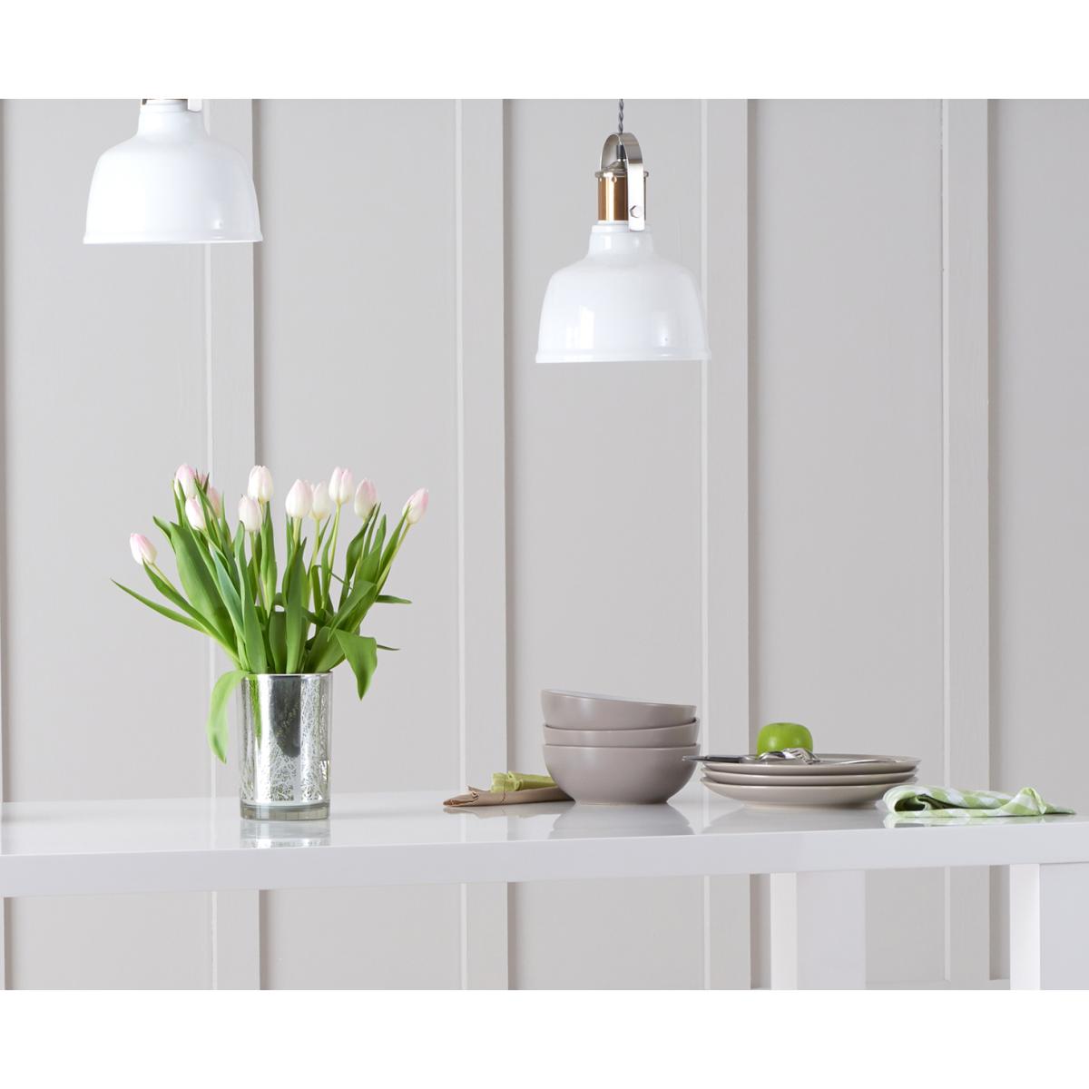 The Seattle 200cm white high gloss dining table offers a sleek, modern centrepiece that works well in contemporary or minimalist interiors. Its clean lines and glossy finish make it ideal for adding a sense of space and brightness to the room. The grey Gianni chairs provide a neutral yet sophisticated contrast, making them versatile enough to pair with various colour schemes or textured accessories. For styling, consider adding a centrepiece like a simple botanical arrangement or a selection of modern tableware to enhance the table’s reflective surface. It works particularly well in open-plan kitchens or dining areas with monochrome or muted colour palettes, where it can act as a statement but understated element. To maximise its practicality, opt for soft-close drawers or protective placemats to prevent scratches on the high gloss surface.