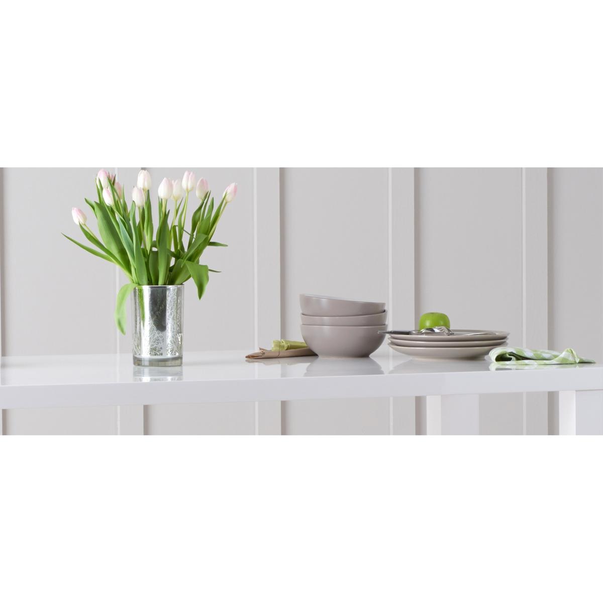 I’m a fan of this gloss-white table for its clean lines and light-reflecting surface, which instantly lifts a room. It’s at home in contemporary, Scandi-style or minimalist interiors, and can slot into more eclectic spaces when paired with timber chairs or textured rugs. For styling, keep the top largely clear to let its sheen do the work - a simple runner or set of placemats works well. Anchor it with a statement light above, mix in chairs in contrasting tones (charcoal or soft pastels are good picks) and add a single sculptural vase or bowl as a focal point.