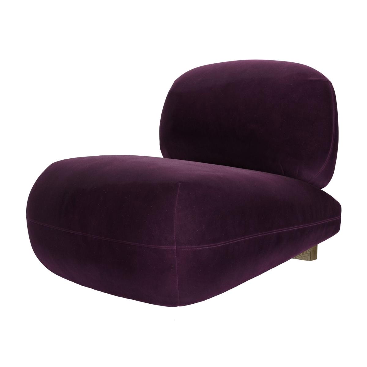 I love this armchair for its plush Damson velvet, which adds a rich splash of colour and texture to any room. Its relaxed, low-profile shape makes it ideal for contemporary or eclectic interiors, working well in living rooms, cosy corners, or even bedrooms. To style it effectively, consider pairing it with neutral or metallic accents to let the deep hue stand out, and layer with soft throws or patterned cushions for added comfort and visual interest. Due to its bold colour and tactile fabric, it’s a versatile statement piece that can elevate a space but still feels inviting and approachable.