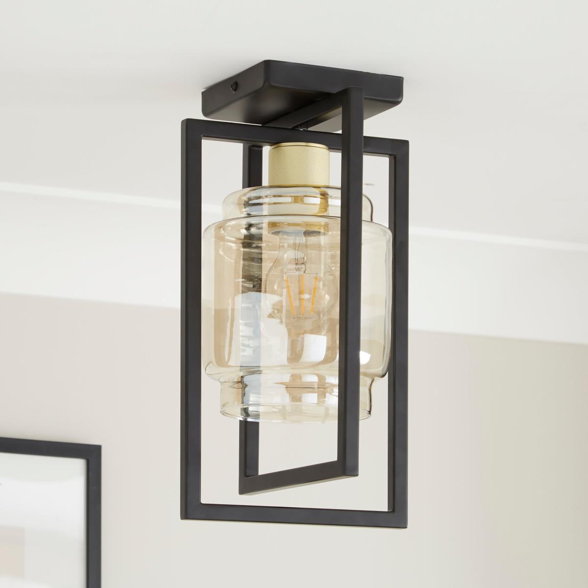 * Modern-Industrial Design* Cognac Glass Shade* Matte Black Frame Meet a captivating luminary that effortlessly captures the spotlight. This modern masterpiece radiates an industrial allure, turning your space into a sanctuary of contemporary sophistication. The fusion of a cognac glass shade and a chic matte black frame emanates timeless elegance, becoming a cherished addition to your decor.