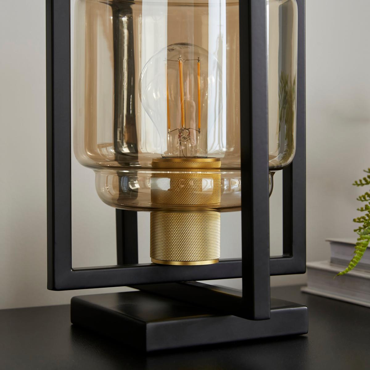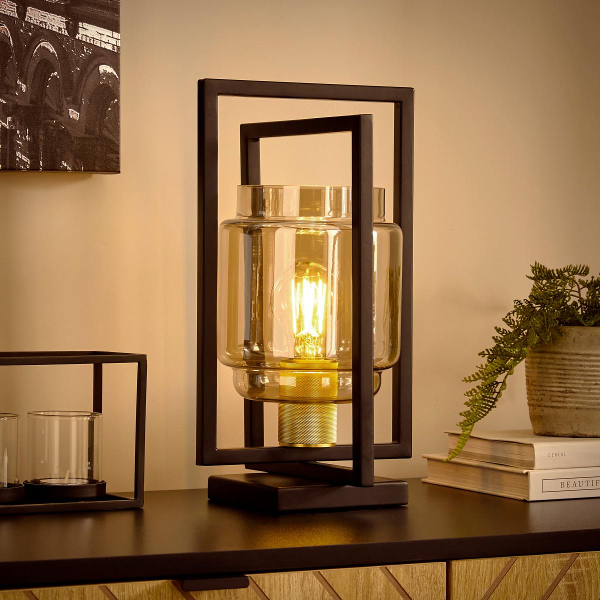 * Modern Industrial Design* Cognac Glass Shade* Matte Black Frame Meet the lamp that effortlessly captures the spotlight, whether on/off. This modern masterpiece radiates an industrial allure, turning your space into a sanctuary of contemporary sophistication. The fusion of a cognac glass shade and a chic matte black frame emanates timeless elegance, becoming a cherished addition to your decor.