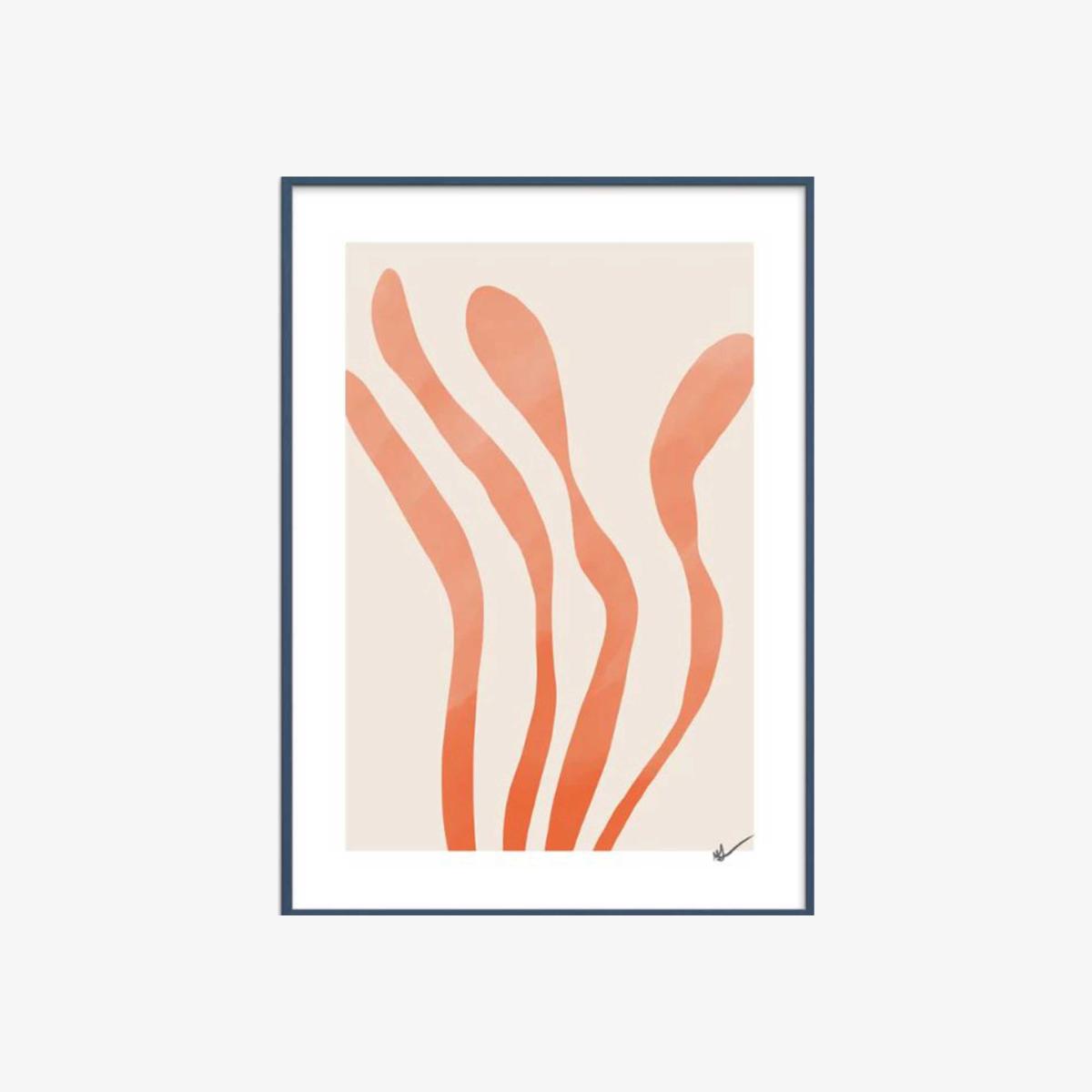 The Seaweed Framed Print showcases a graceful composition of flowing lines in warm, reddish-orange tones that gradually soften into a muted, dusty hue. Vibrant yet balanced, this artwork evokes movement and energy while maintaining a refined, contemporary feel, perfect for bringing colour and character to modern interiors.