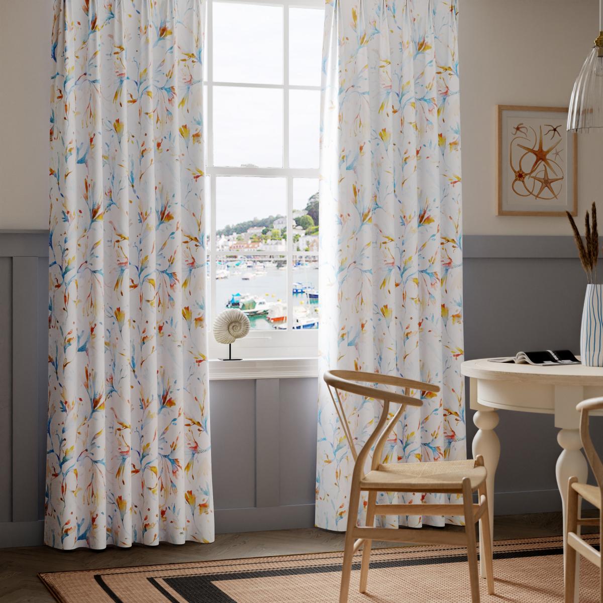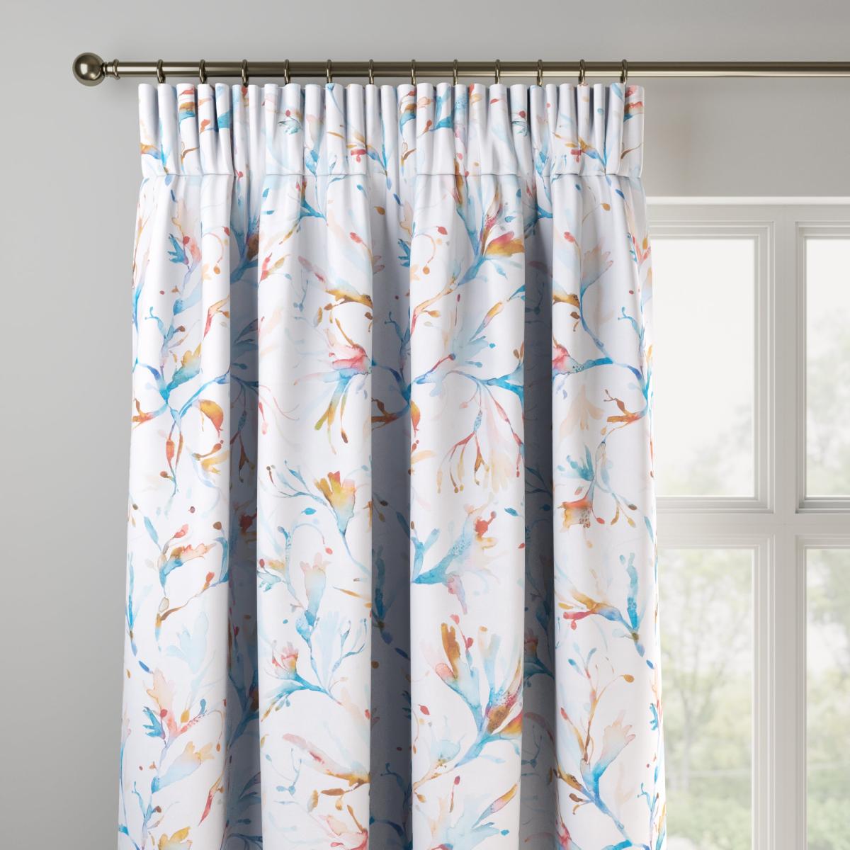 * Selection of header types available* Choice of linings options available* Made to your measurements* Sold as a pair Immerse yourself in the calming coastal design of Seaweed Cobalt curtains. Made from 100% cotton and crafted in the UK, these web-exclusive curtains offer a splash of seaside charm. Dry clean only. Need some support with your Made to Measure curtains? Feel free to book an appointment with one of our experts. dunelm. com/category/made-to-measure/book-an-appointment). For windows that cannot wait, we have a full range of [Ready Made Curtains](https://www. dunelm. com/category/home-and-furniture/curtains-and-blinds/curtains/all-ready-made-curtains) available for you to shop. Please note: you measure for pinch pleat curtains in the same way as pencil pleat curtains**Online exclusive:** This product is only available to order online. Our expert virtual consultants can provide advice on measuring/fitting and style tips and our free samples can be ordered online to be delivered straight to your home to help you choose a fabric that's right for you. Once you're happy, simply place your order online and we'll do the rest. Please note: If your measured width is over 124cm your curtains will come with a fabric join to provide the full width required.