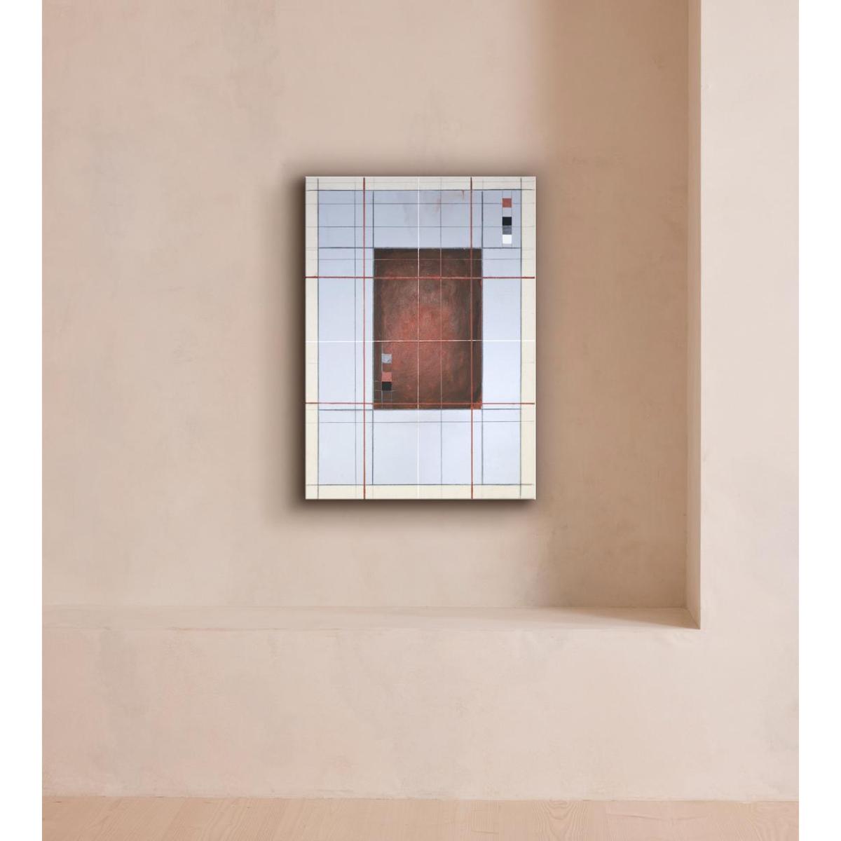 I love this piece because of its contemporary feel and subtle colour palette, which makes it versatile for various interior styles. It works particularly well in modern or minimalist settings, where its clean lines can complement sleek furniture and neutral tones. For styling, consider pairing it with muted accessories or placing it above a simple console or sofa to create a focal point without overwhelming the space. This artwork also benefits from being hung at eye level to truly appreciate its detail, helping to introduce a hint of abstract interest and texture to an understated space.