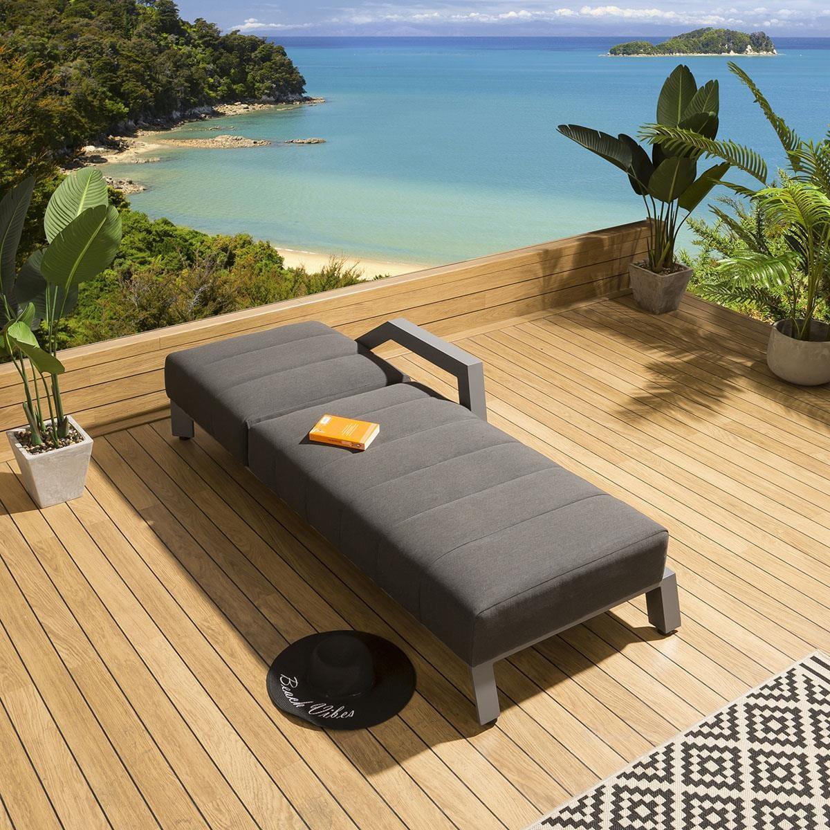 This Whitehaven garden sun lounger in grey by Quatropi is a manufacturing SECOND item due to some substandard stitching that does not align, also some loose frayed ends and some untidy sections where the undercover is sewn on. With all of this said this chair is made from high-grade aluminium which makes it very lightweight and easy to change around when the occasion dictates. The weather resistant cushioning is created with high-density foam for long-lasting support which provides ultimate comfort for those long summer days. Aluminium garden furniture requires very little maintenance. The Whitehaven garden collection by Quatropi is an elegant range designed to make you feel at home in your garden with a classy aura that encompasses everything we love about contemporary furniture. Quatropi outdoor furniture is crafted for life, made for all seasons, and built to last. Make the most of your outdoor space with a carefully selected aluminium garden furniture set. Perfect for even the most strenuous weather conditions. Stylish and classic, aluminium has been a reliable choice for garden furniture. Arm height is 570mm. Backrest fully extended height is 900mm PLEASE NOTE THIS ITEM IS A MANUFACTURING SECONDS ITEM AND DOES CARRY SOME IMPERFECTION, KINDLY SEE THE ADDITIONAL PHOTOS FOR DETAILS. THIS IT IS PRICED TO ACCOUNT FOR THIS AND IS NON RETURNABLE. Individual weather cover is included Matching Items Available Left arm and Right arm version available