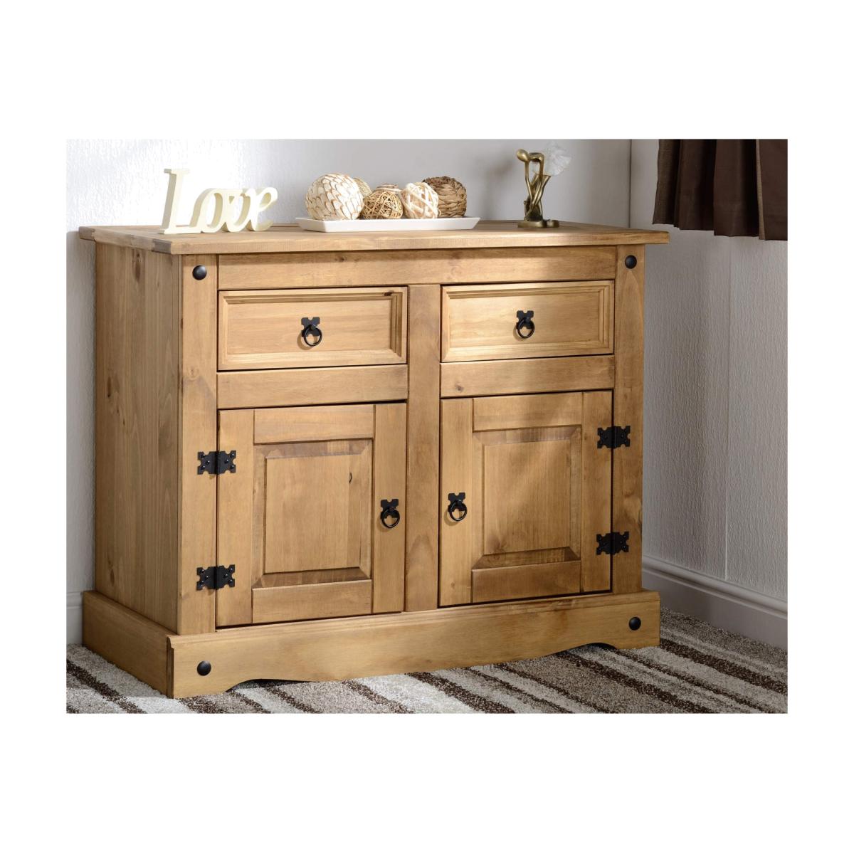 Seconique Corona Pine Sideboard with 2 Doors & 2 Drawers with Black Handles