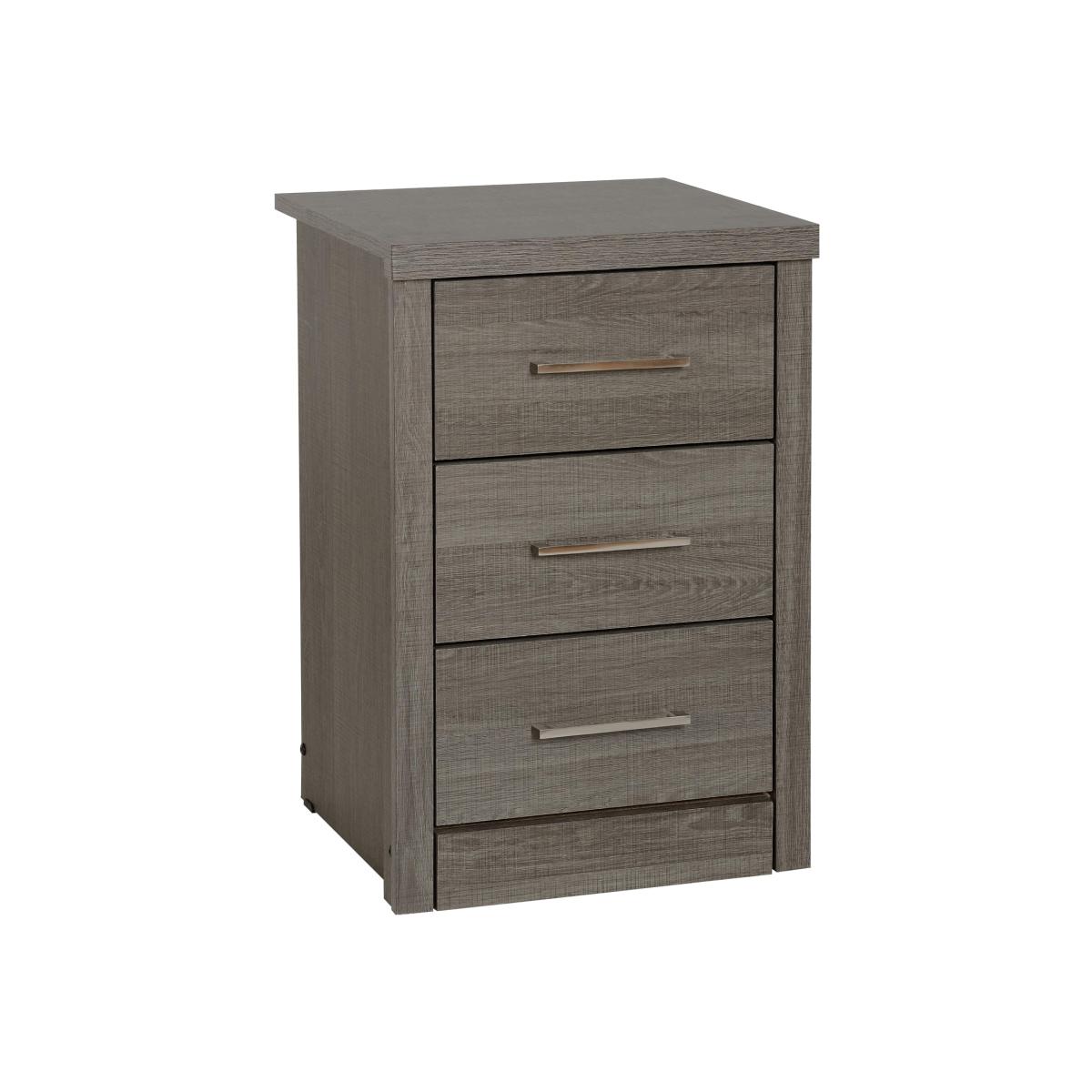 Seconique Lisbon 3 Drawer Bedside Table in Black Wood Grain