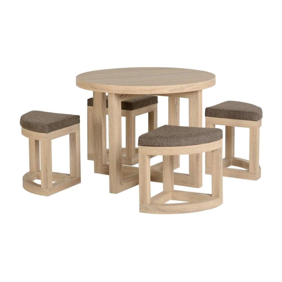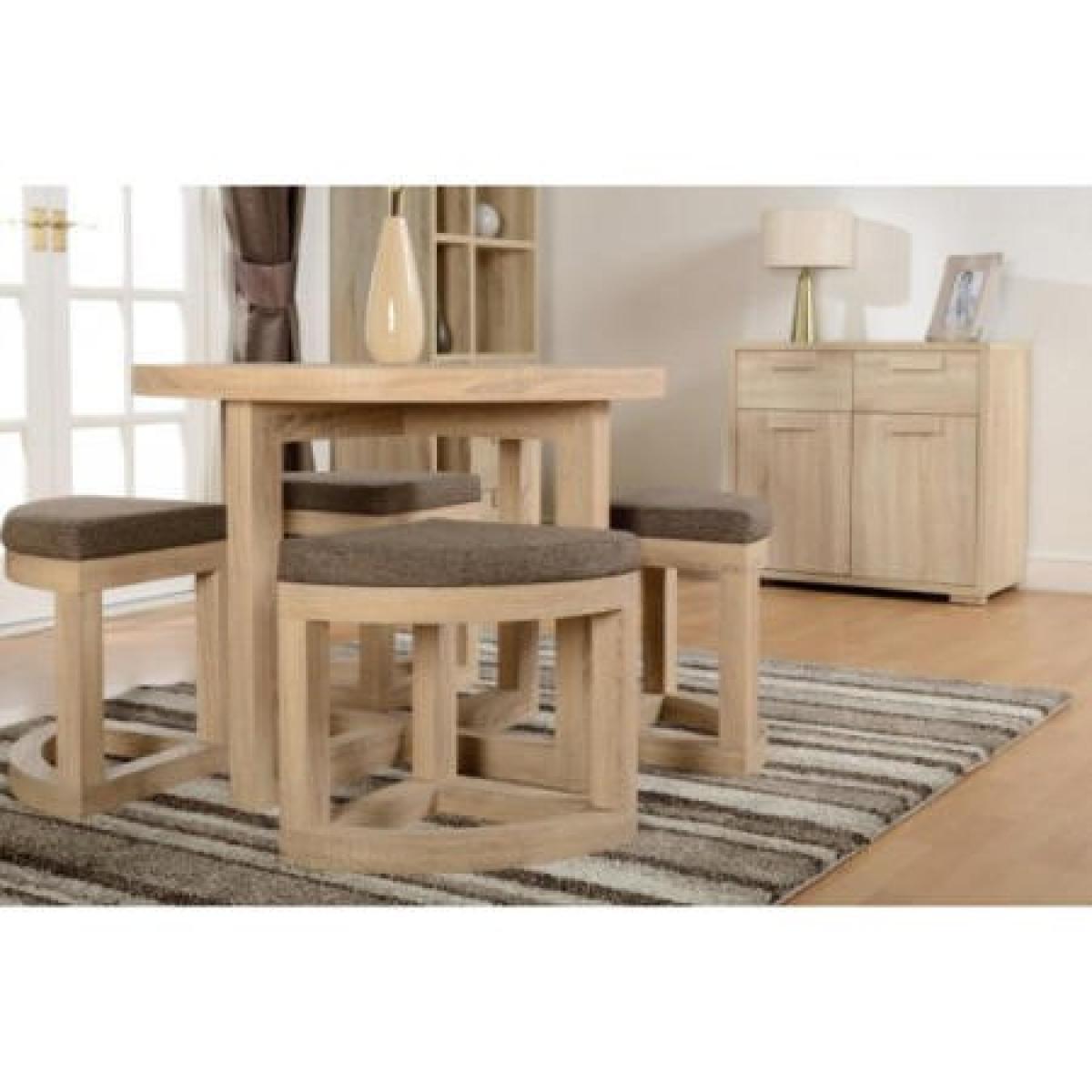 Seconique Oak Dining Set + 4 Stowaway Chairs with Brown Linen Seats