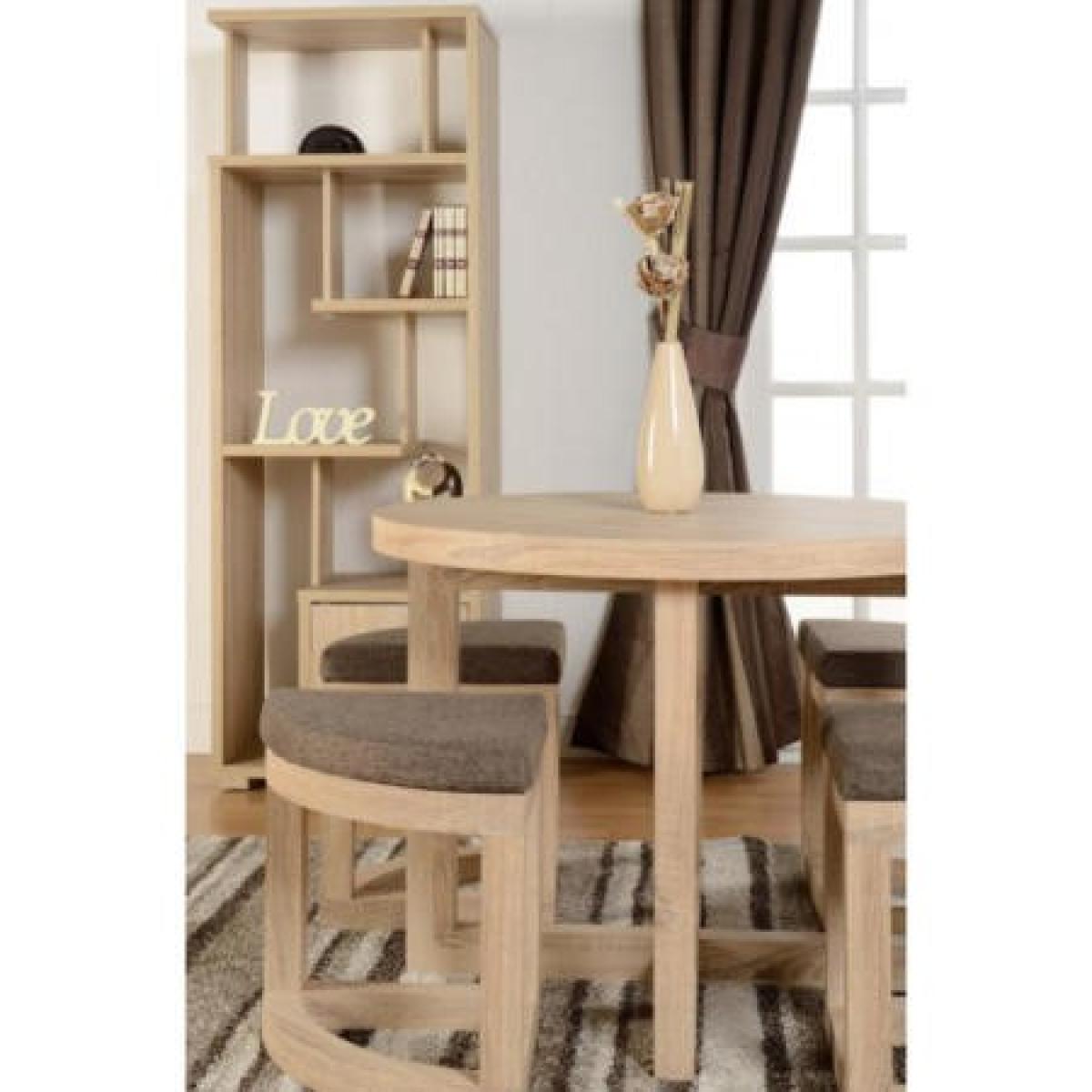 I really like this set for its versatile, natural look that works well in both contemporary and traditional interiors. The oak finish brings a warm, inviting feel, perfect for casual family meals or more relaxed dining areas. The four stools with linen seats add a touch of comfort and subtle texture, making the set appealing without being overly formal. Styling tip-wise, it pairs nicely with neutral tones or soft pastel accents, and you could add colourful placemats or a statement centrepiece to bring some personality. It’s especially well-suited for smaller kitchens or breakfast nooks, where the intimate size and simple design help maximise space while remaining practical and stylish.