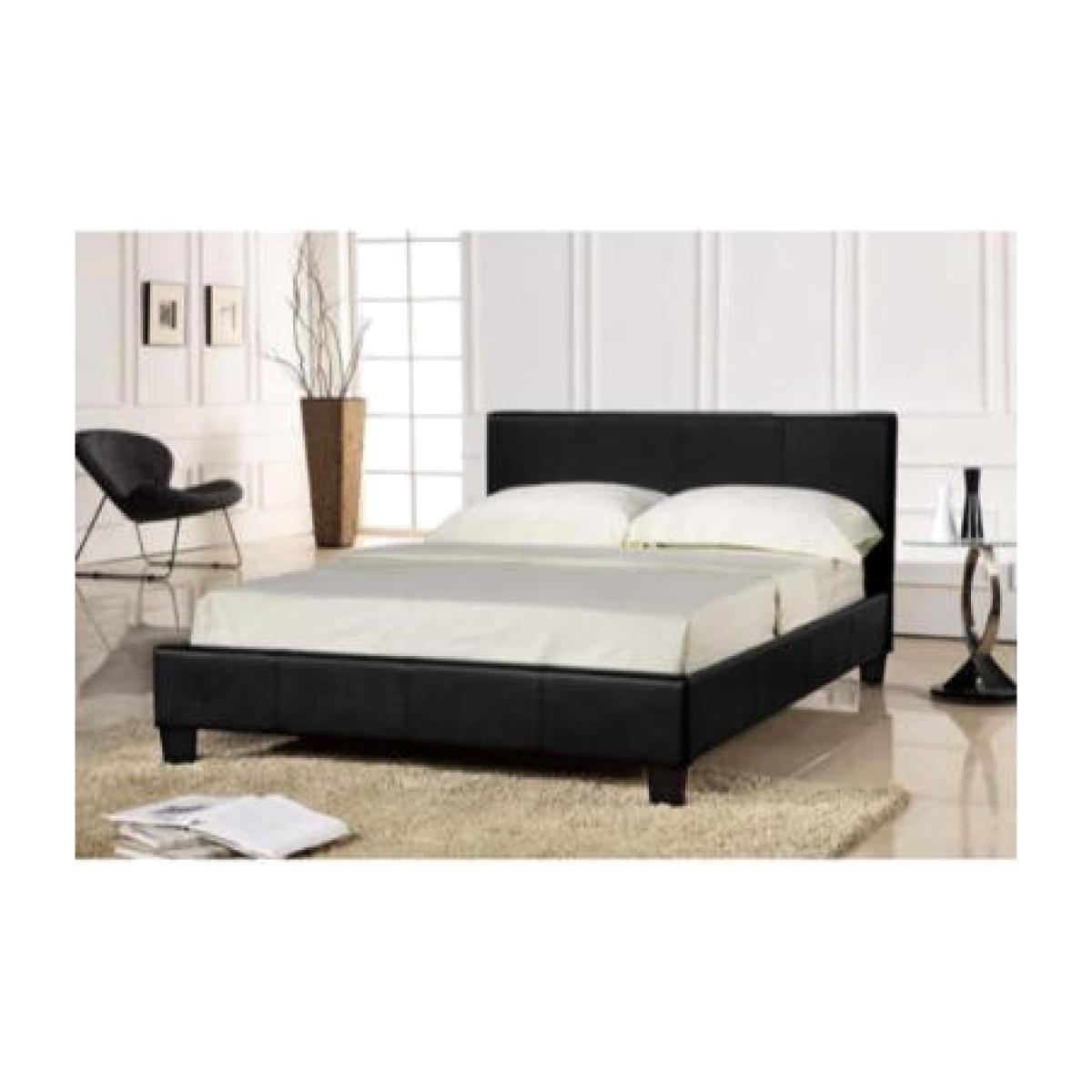 Black upholstery Sprung slatted mattress support Tapered feet Upholstered bed Stitching detail Headboard Low footend Metal centre rail, cross bar and 6 legs for enhanced stability Will fit a UK double size mattress Please note, a mattress is not included with this bed frame.