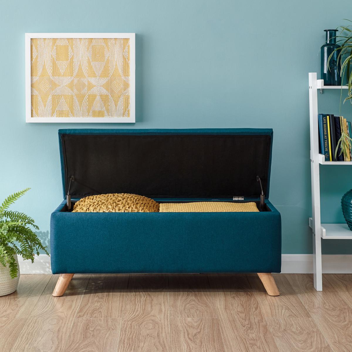 I love this ottoman’s striking teal colour, which adds a vibrant pop to both modern and eclectic interiors. It works particularly well in spaces with colour blocking or layered neutrals, providing a lively yet sophisticated touch. As a stylist, I’d suggest using it as a versatile piece - whether as extra seating, a footrest, or even as a stylish alternative to a side table when topped with a tray. To keep it looking fresh, pair with cushions or throws in complementary or contrasting shades, like mustard, grey, or white. Its compact size makes it ideal for both cosy corners and open-plan living rooms, adding personality without overpowering the space.