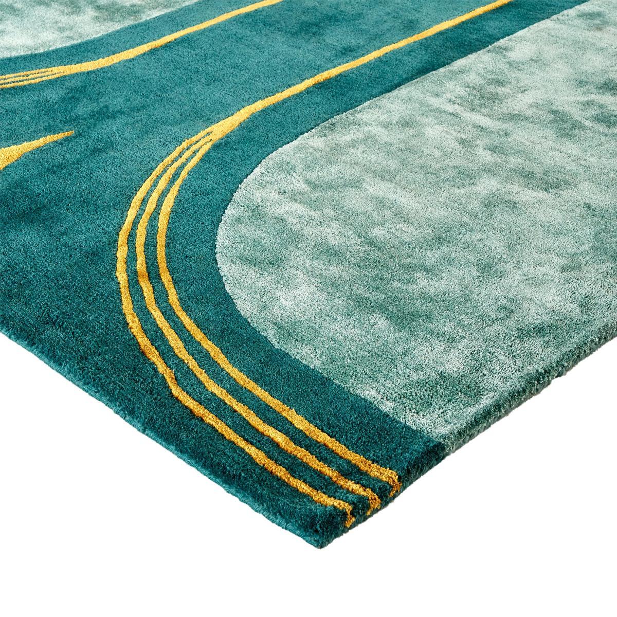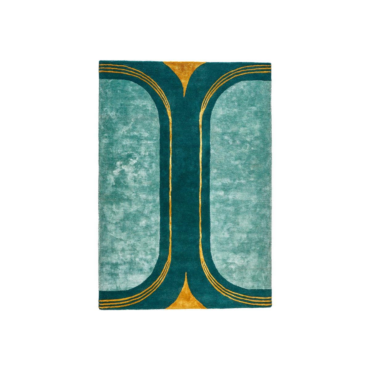 Make a stylish statement with our Seda rug, available in a range of sizes. With its emerald green and gold colourway and strong graphic motif, this carpet will add a modern-oriental vibe to your surroundings.