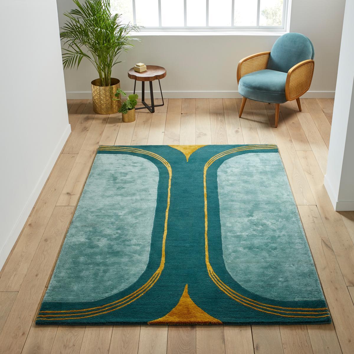 I love this rug because it offers a fresh yet versatile look that can anchor a variety of interior styles, from contemporary to retro-inspired spaces. The mix of wool and viscose provides a soft, luxurious feel underfoot with subtle sheen, making it both practical and stylish. It works particularly well in living rooms or bedrooms where a pop of colour and pattern can define a space. For styling, I recommend pairing it with neutral furniture to let the rug make the statement, or mix it with other textures like velvet cushions or natural wood for added warmth. Its bold pattern and rich colours can also be a great focal point in minimalist interiors, adding character without overpowering the room.