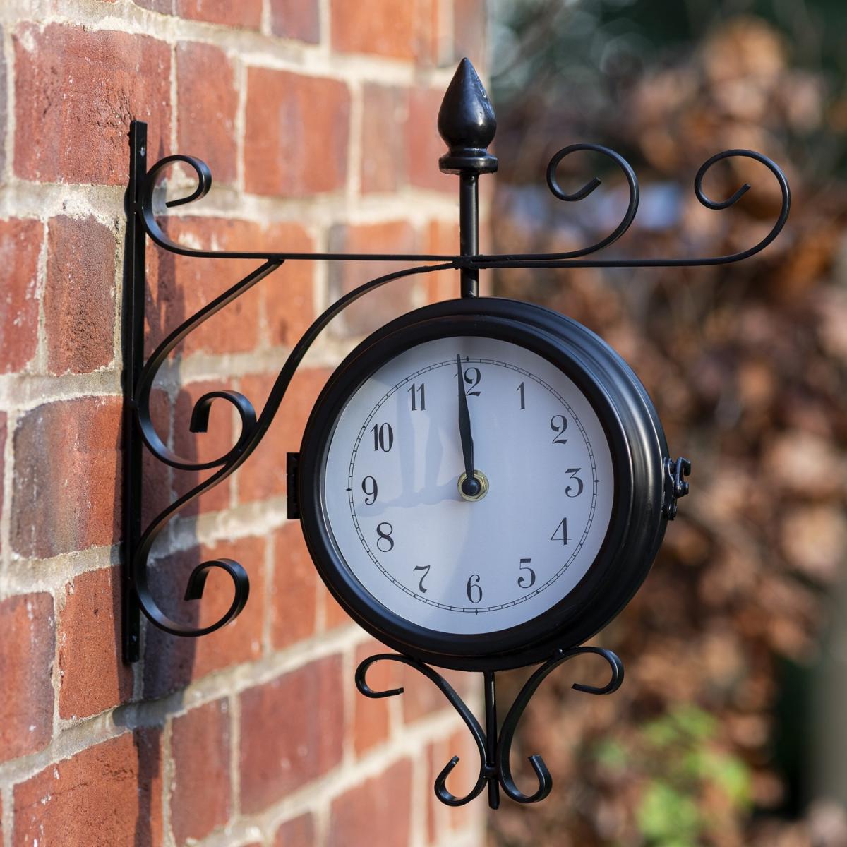 Introducing the Sedgewick Double-Sided Station Clock, a stunning addition to your garden that embodies the charm of a classic double-faced station clock. This exquisite timepiece features a timeless Victorian-era design, complete with intricate ornamental metal finial detailing that enhances its elegance and sophistication. Crafted from robust and weather-resistant powder-coated steel, this clock is built to withstand the elements while maintaining its striking appearance. The double-faced design ensures that the same beautiful clock face is visible from both sides, making it a perfect focal point for any outdoor setting.