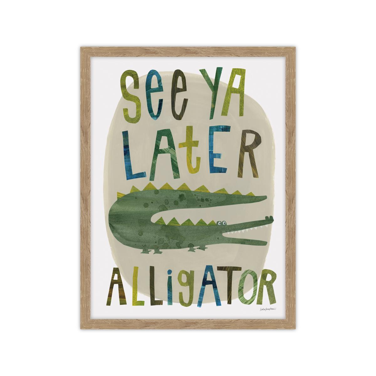 * Playful animal print * 'See Ya Later Alligator' text * Great for children's rooms This playful framed print adds a splash of colour to any room with bold, vibrant typography in green, blue, and yellow. Featuring the fun phrase 'See Ya Later Alligator' alongside a charming cartoon-style alligator, it’s perfect for children's bedrooms or play areas. The wooden coloured frame brings a warm, natural touch to the artwork, while the glass finish ensures a sleek, polished look. Created by artist Haley Knighten, this whimsical piece is ready to hang and adds a sense of fun to modern interiors.